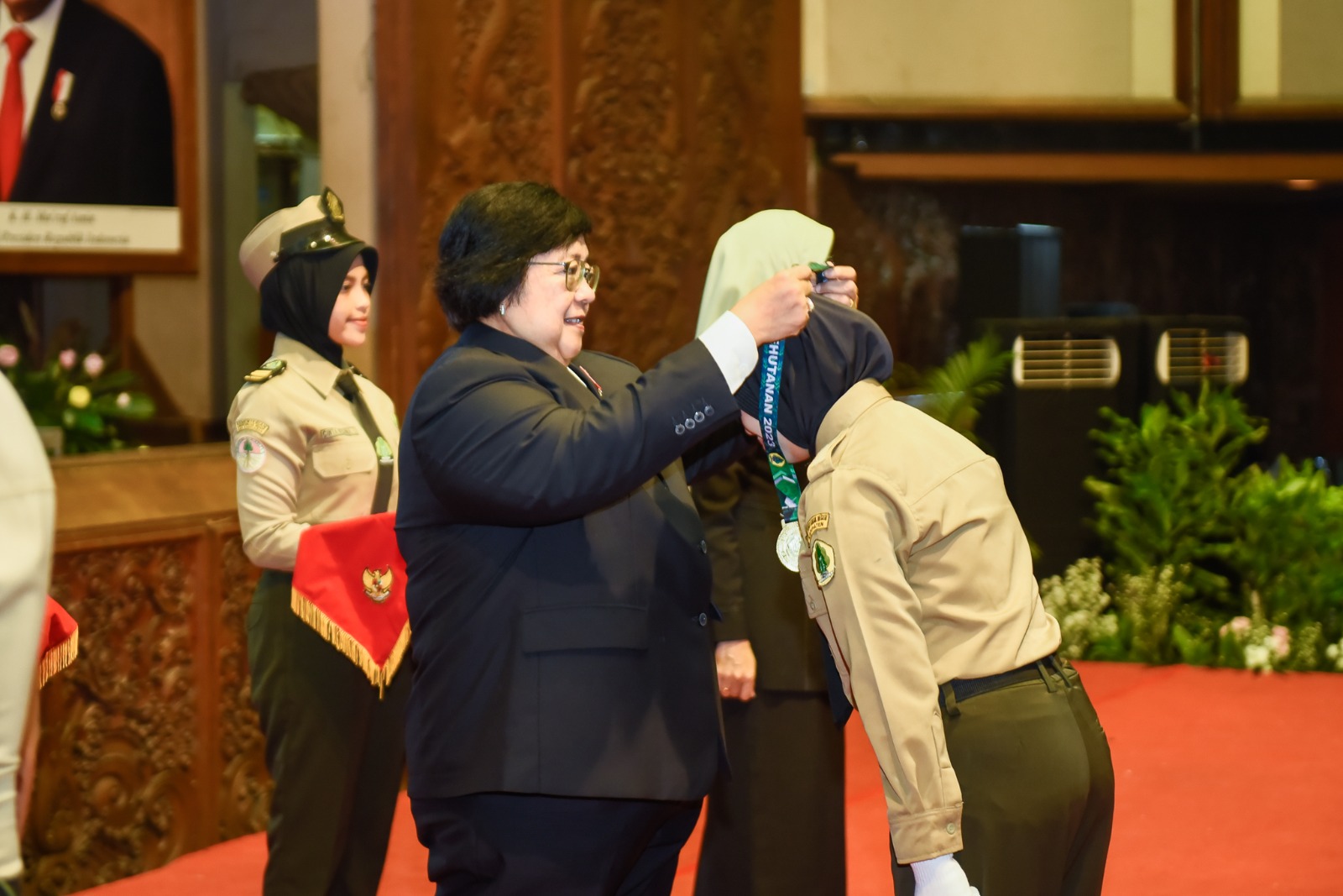 “Kita tidak bisa main-main saat ini dalam menjaga kebangsaan dan tumpah darah Indonesia kita. Hal tersebut terkait cukup erat dengan pendidikan yang sudah kalian terima. Dan akan terus kita tanamkan dan harus mampu kita aktualisasikan dalam pergaulan ditengah-tengah masyarakat dimana kalian akan terjun,” terang Menteri Siti.