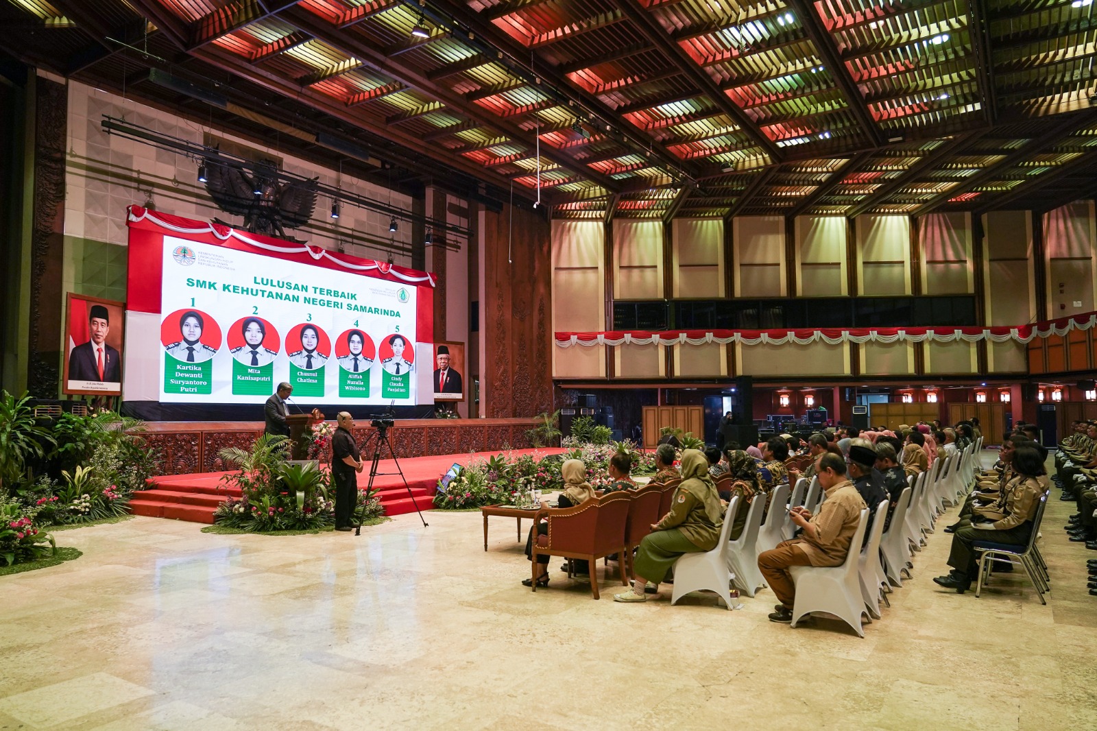 Sementara itu, Plt. Kepala Badan Penyuluhan dan Pengembangan SDM KLHK Ade Palguna melaporkan peserta wisuda hari ini terdiri dari siswa laki-laki 356 orang dan perempuan 116 hadir langsung di tempat acara dan sebagian lainnya hadir. Mereka hadir didampingi oleh orang tua masing-masing baik secara langsung di Jakarta maupun dari sekolahnya masing-masing.
