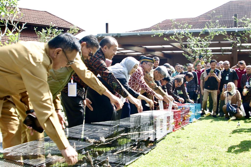 Sebelumnya, dilakukan juga pelepasliaran burung sebanyak 160 ekor yang terdiri dari jenis Kepudang Kudak Hitam 10 ekor, Kacamata Laut 60 ekor, Jalak Kebo 15 ekor, Perkutut Loreng 55 ekor, dan Pipit Zebra 20 ekor. Jenis-jenis burung tersebut tidak dilindungi dan daerah sebarannya di NTB.