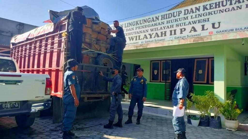 Tim Operasi Balai Gakkum KLHK Wilayah Sulawesi berhasil mengamankan 1 (satu) unit mobil truck yang mengangkut kayu tanpa dokumen pada hari Minggu (6/8/2023) di Jalan Trans Sulawesi, Desa Labuan Lelea, Kecamatan Labuan, Kabupaten Donggala, Provinsi Sulawesi Tenggara. Truk Hino Dutro 130 HT berwarna merah tersebut mengangkut 65 panggal kayu bantalan berbagai ukuran yang tidak disertai dengan dokumen sahnya hasil hutan.