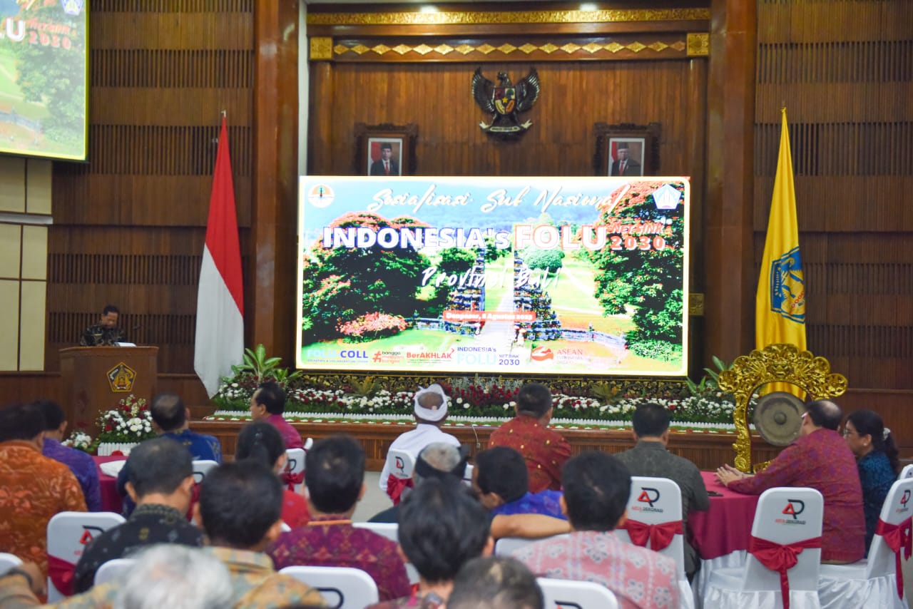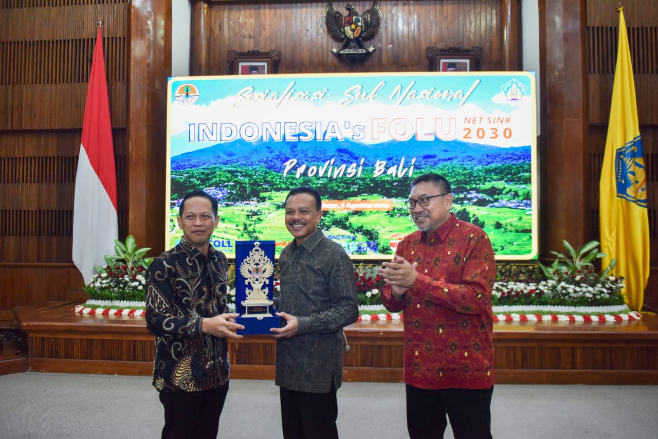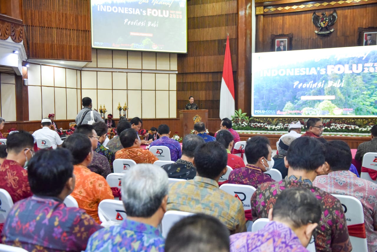 Kementerian Lingkungan Hidup dan Kehutanan (KLHK) menyelenggarakan Sosialisasi tingkat Sub Nasional Indonesia's FOLU Net Sink 2030 untuk wilayah Bali dan Nusa Tenggara di Kantor Gubernur Bali (8/8/2023). Sosialisasi dan workshop ini bertujuan untuk menyampaikan kebijakan, strategi, dan rencana untuk implementasi rencana aksi mitigasi yang mengacu pada target penurunan emisi gas rumah kaca yang telah ditetapkan secara nasional (Nationaly Determined Contribution/NDC) sampai dengan tahun 2030 melalui pendekatan carbon net sink dari sektor kehutanan dan penggunaan lahan lainnya pada tahun 2030 dengan memperhatikan berbagai instrumen bidang lingkungan hidup dan kehutanan.