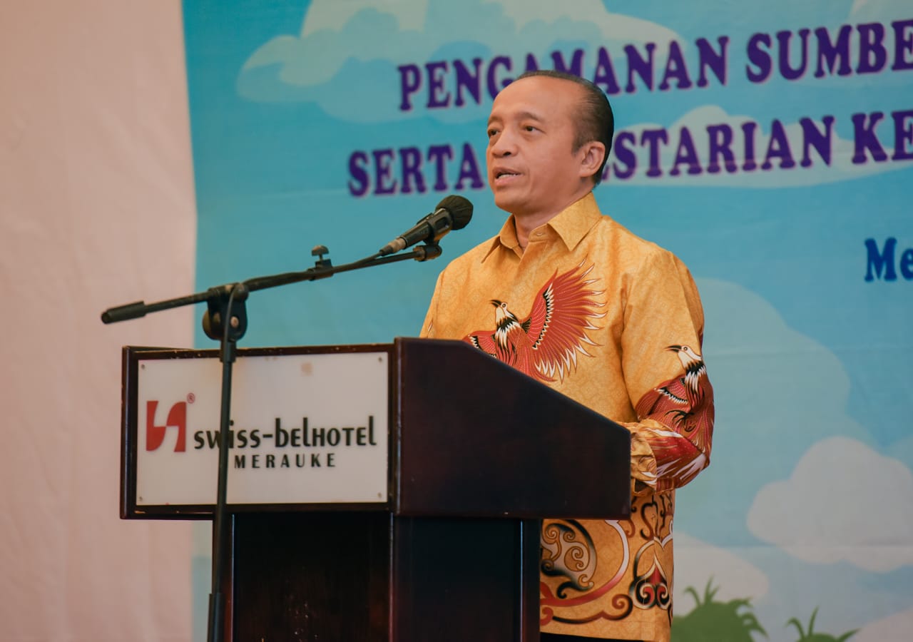 Selanjutnya Bambang menyampaikan keynote speech tentang "Produktivitas Tapak Hutan dan Lingkungan Hidup untuk Pengamanan SDA LH serta Pelestarian Keanekaragaman Hayati Pulau Papua".