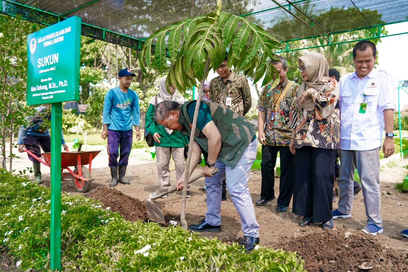 Titik lokasi yang dikunjungi Wamen Alue selanjutnya yaitu Persemaian Permanen BPDAS Pemali Jratun di Bergas, Kabupaten Semarang. Di sana, Wamen Alue menanam pohon sukun (Artocarpus Altilis), dilanjut dengan meninjau areal persemaian seraya menyapa para pekerja yang sedang menyiapkan media olah tanam dan benih tanaman.