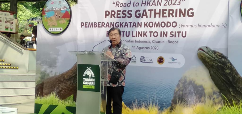 “Pada hari ini, kita menyaksikan upaya nyata yang telah dilakukan lembaga konservasi untuk melaksanakan fungsi dan kewajibannya sebagai sumber cadangan genetik untuk menjaga keseimbangan populasi satwa di habitat alaminya dan merupakan salah satu bentuk implementasi program keterhubungan konservasi ex-situ dan konservasi in-situ (ex-situ link to in-situ program). Ini merupakan program ex-situ link to in-situ dari lembaga konservasi yang pertama kali di Indonesia, semoga dapat direplikasi keberhasilannya oleh Lembaga konservasi lain,” ungkap Direktur Jenderal Konservasi Sumber Daya Alam dan Ekosistem (KSDAE) KLHK, Prof. Satyawan Pudyamoko, dalam sambutannya yang dibacakan Sekretaris Direktorat Jenderal KSDAE, Suharyono, saat melepas keberangkatan komodo di Taman Safari Indonesia, Bogor.