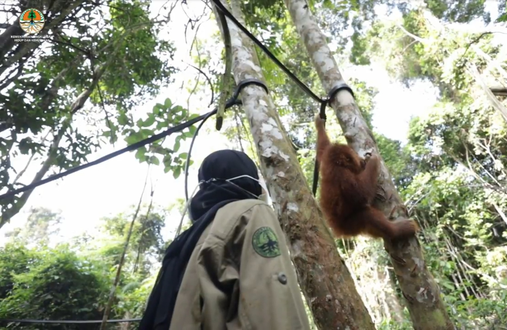 "Saat ini Siti dan Sudin masih menjalani proses reintroduksi diantaranya belajar hidup di alam melalui pelatihan sekolah hutan. Setiap hari, trainer orangutan membawa Siti dan Sudin mengikuti sekolah hutan dari pagi hingga sore hari," ujar Indra Exploitasia, Staf Ahli Menteri LHK.