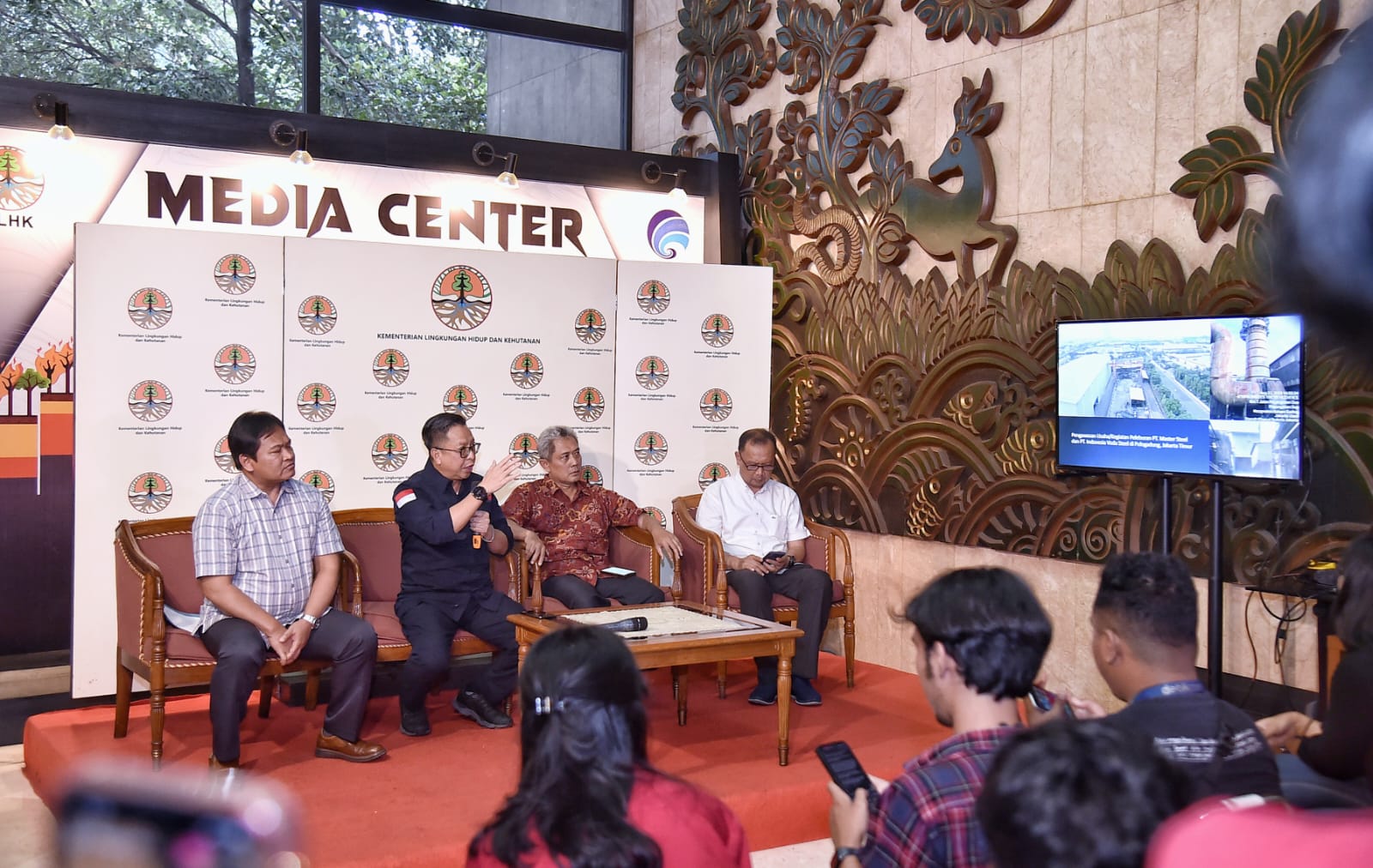 Direktur Jenderal Penegakan Hukum LHK, Rasio Ridho Sani yang juga selaku ketua satgas menyampaikan hasil pengawasan dan penindakan yang telah dilakukan kepada awak media di Jakarta (23/8/2023). Rasio Sani menyatakan bahwa, Satgas Pengendalian Pencemaran Udara melakukan pengawasan kepada beberapa unit usaha.