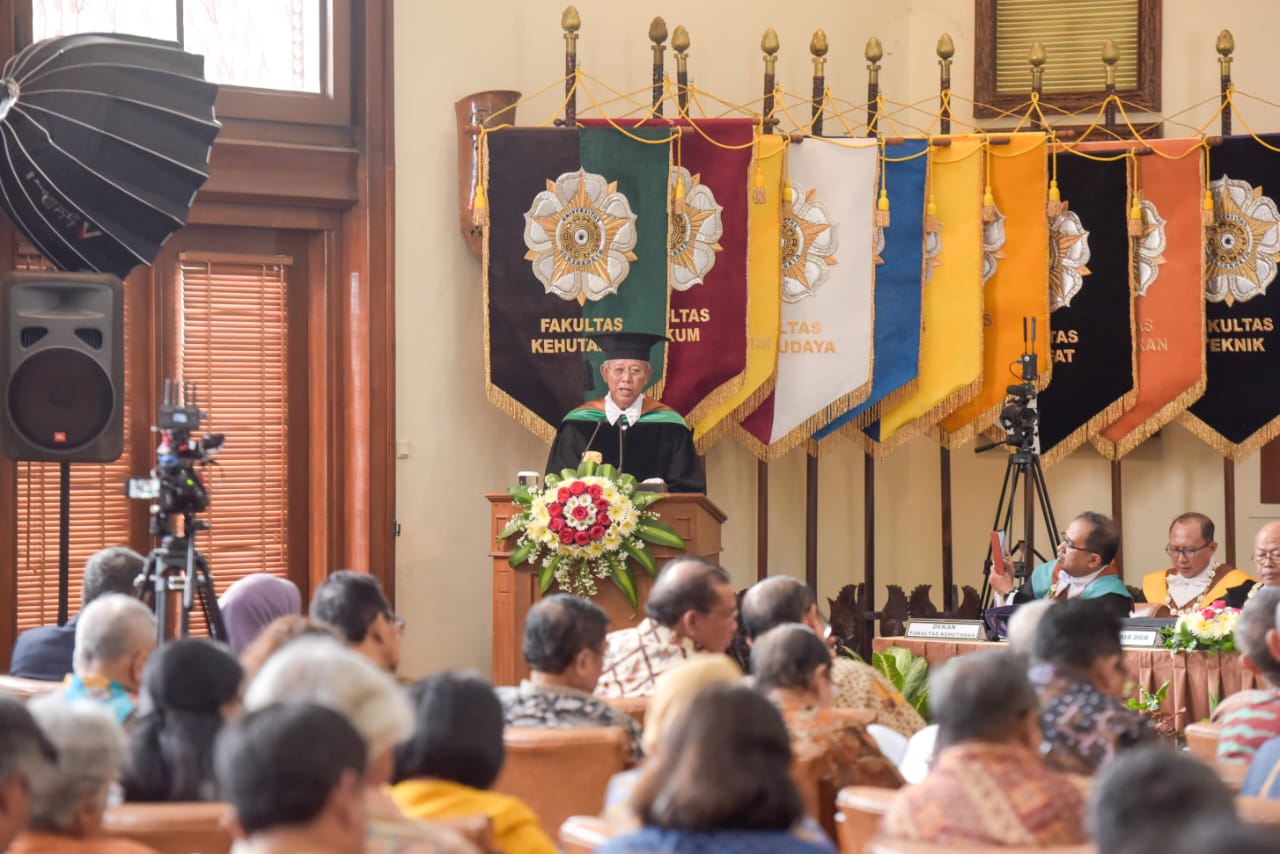 "UGM menghargai setiap langkah nyata para alumni kami yang mendukung penyelamatan keanekaragaman hayati dan mengembangkan paradigma konservasi. Oleh karena itu, kami memberikan gelar Doktor Kehormatan kepada salah satu alumni terbaik kami, Ir. Wahjudi Wardojo, M.Sc., sebagai penghargaan atas kontribusi luar biasanya di bidang ilmu konservasi sumber daya hutan," kata Prof. dr. Ova Emilia.