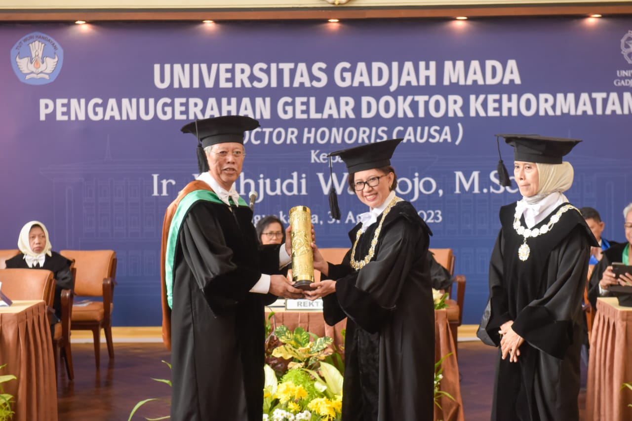Universitas Gadjah Mada (UGM) dengan bangga mengumumkan penganugerahan gelar Doktor Honoris Causa (HC) dalam bidang ilmu konservasi sumber daya hutan kepada Ir. Wahjudi Wardojo, M.Sc. Penganugerahan gelar ini berlangsung pada hari Kamis, 31 Agustus 2023, di Balai Senat UGM.