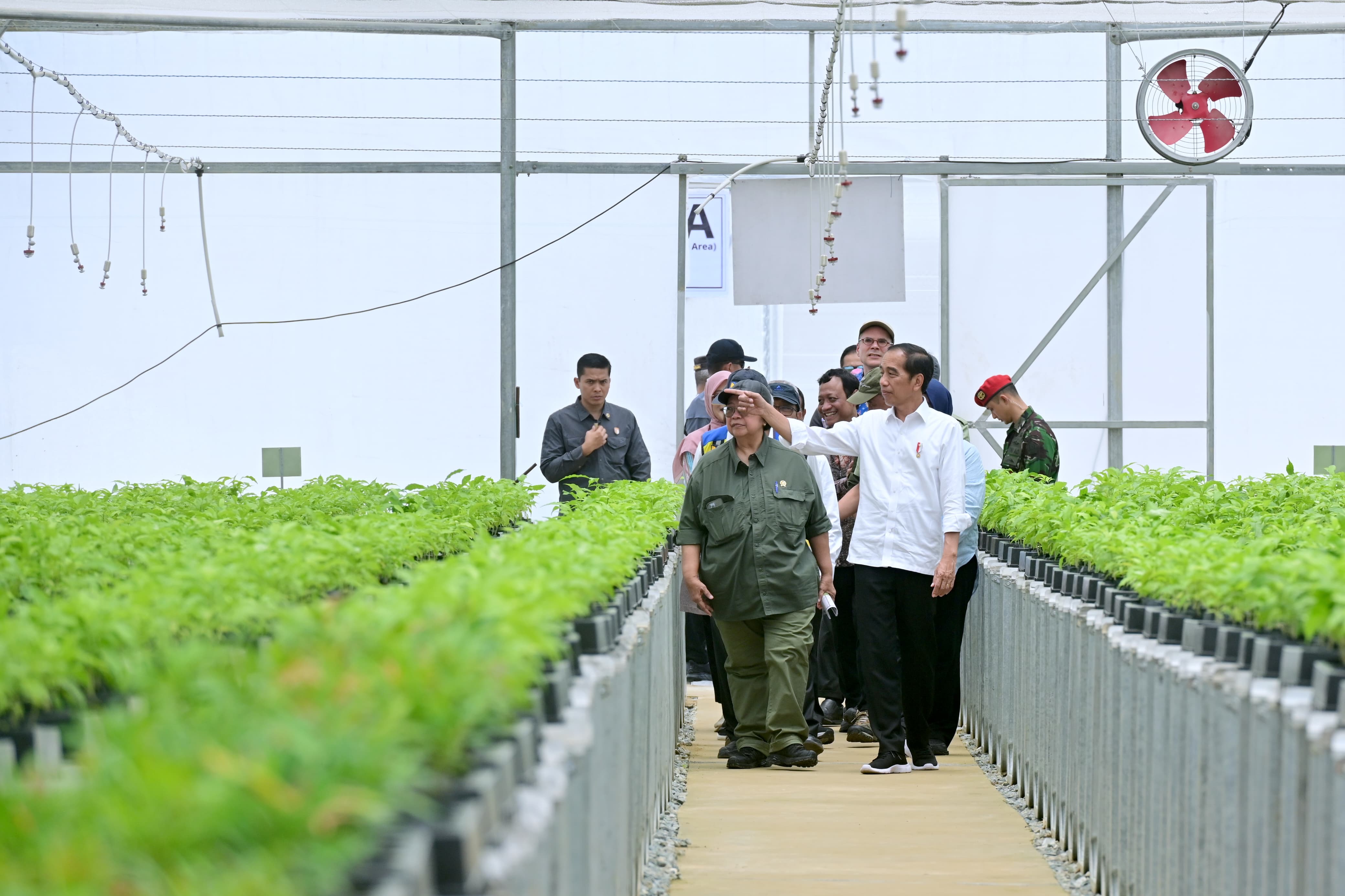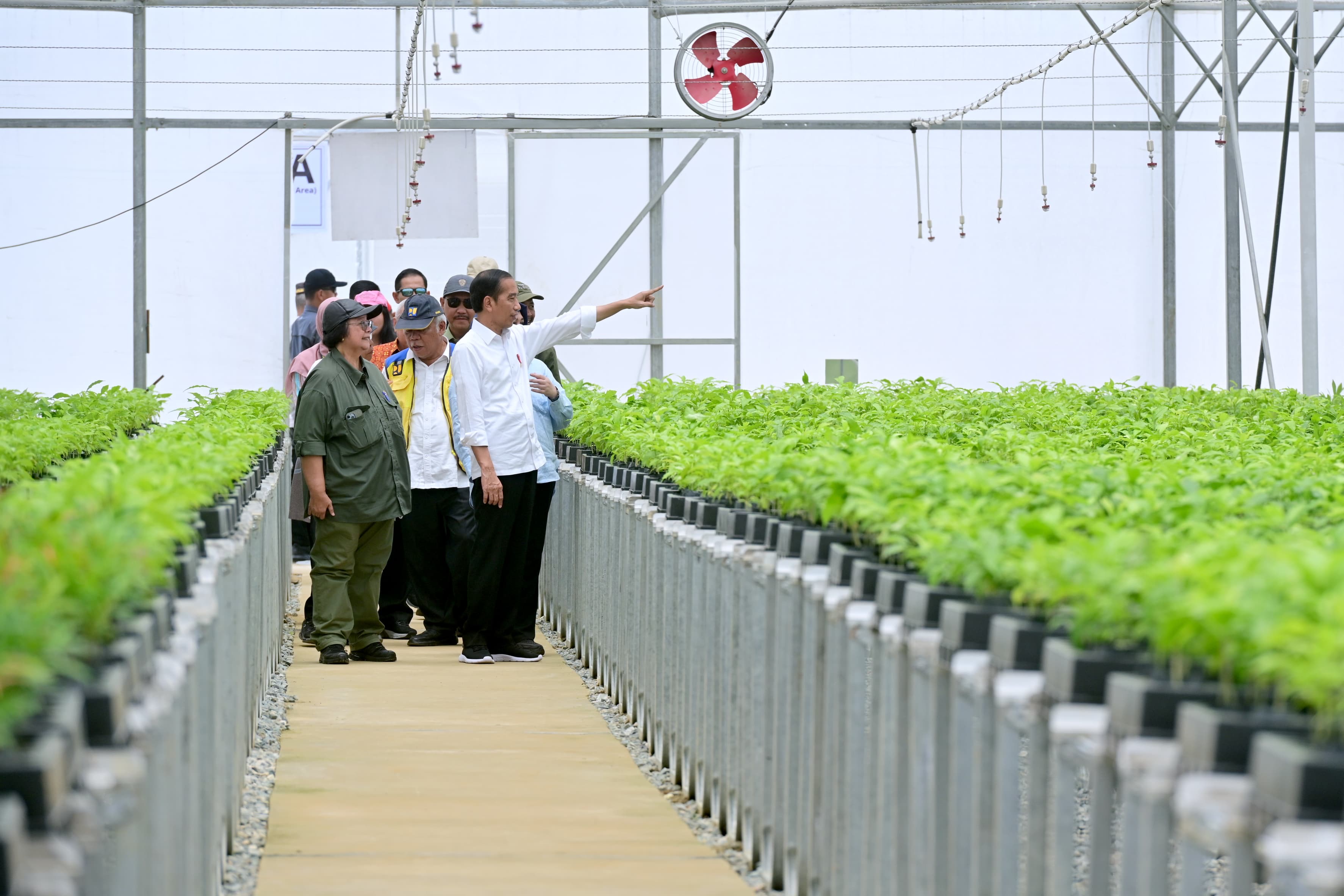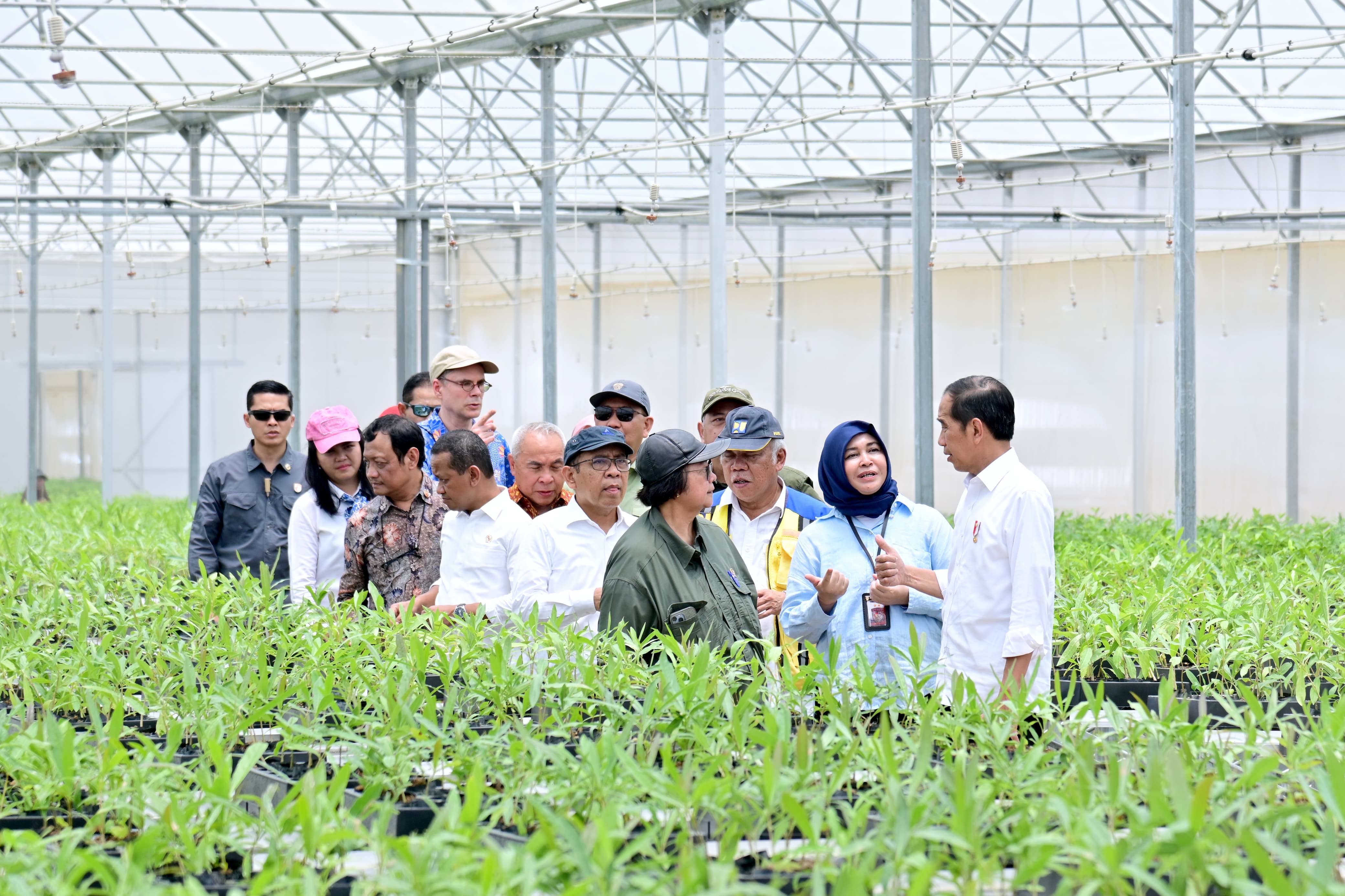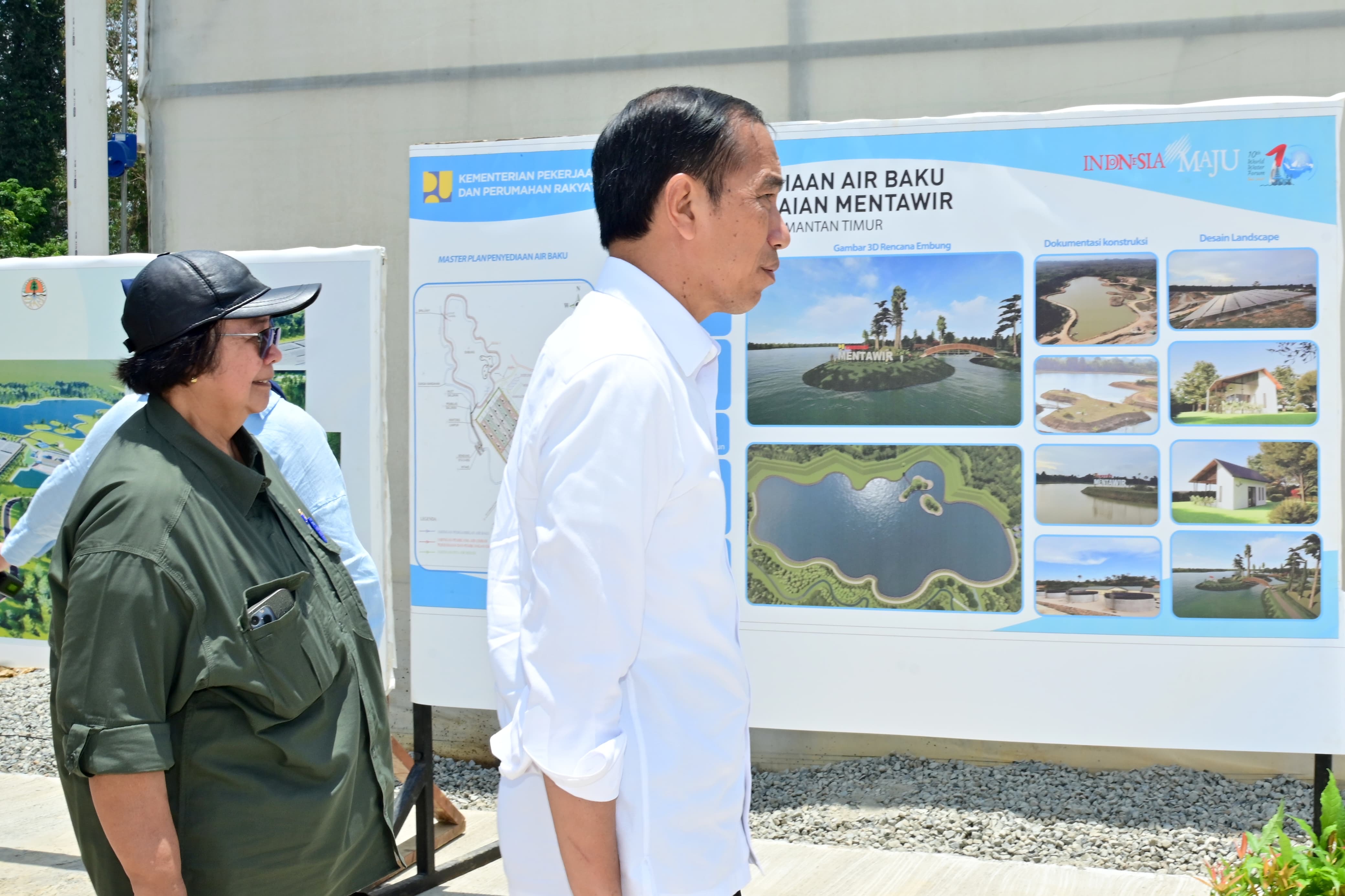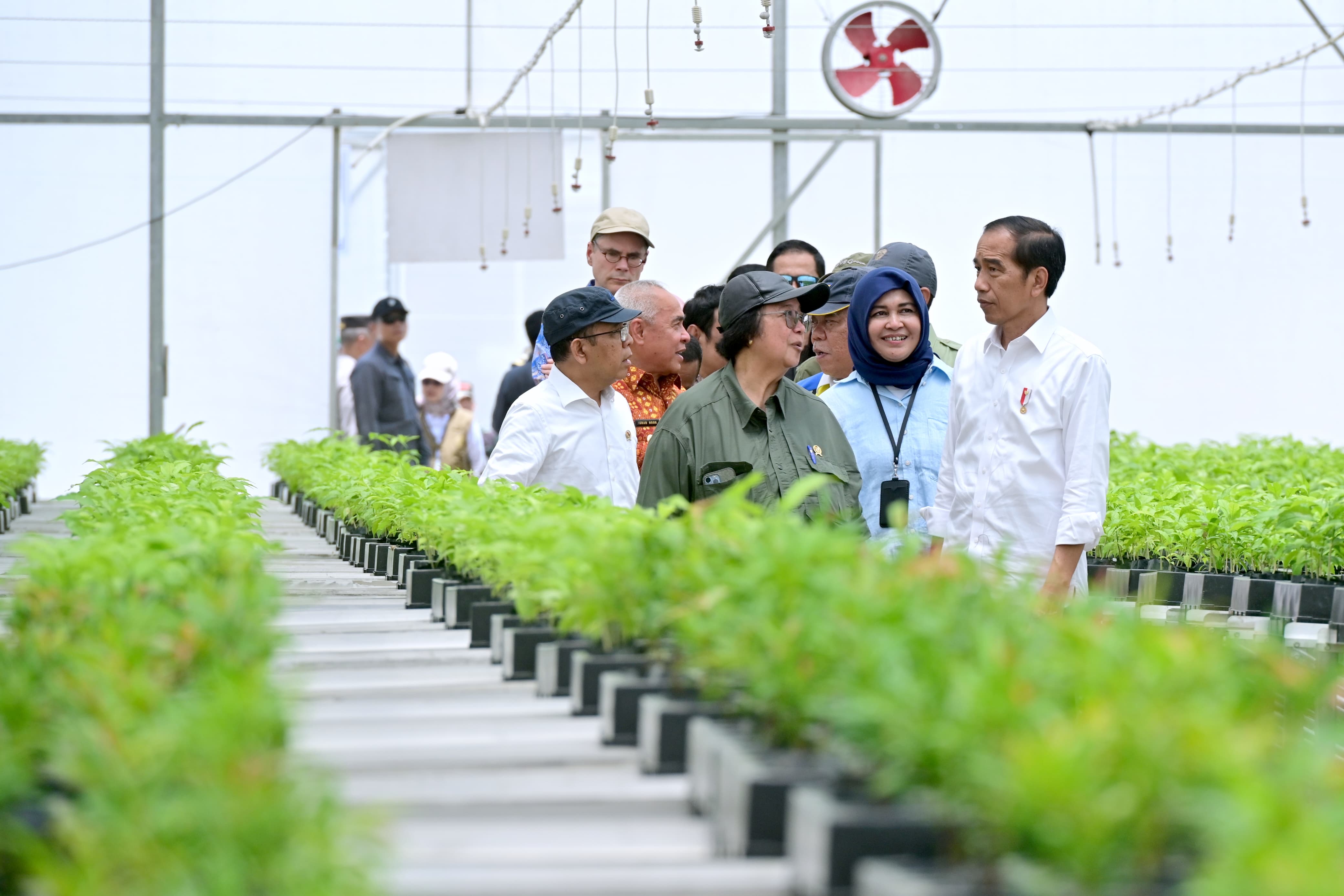 Presiden Joko Widodo, didampingi Menteri Lingkungan Hidup dan Kehutanan (LHK), Siti Nurbaya meninjau perkembangan pembangunan Persemaian Mentawir, di Provinsi Kalimantan Timur (21/09/2023). "Dulu kita masuk sini masih belum kelihatan, tapi sekarang sudah hampir 100 persen, tinggal rapi-rapi," ucap Presiden Joko Widodo kepada awak media.