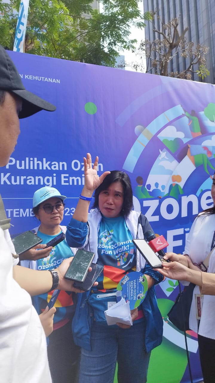 Hal tersebut disampaikan Staf Ahli Menteri (SAM) LHK Bidang Industri dan Perdagangan Internasional, Novia Widyaningtyas, yang hadir mewakili Menteri LHK pada acara Ozone2Climate Fun Walk di Thamrin10 Food and Creative Park, Jakarta (24/9/2023).