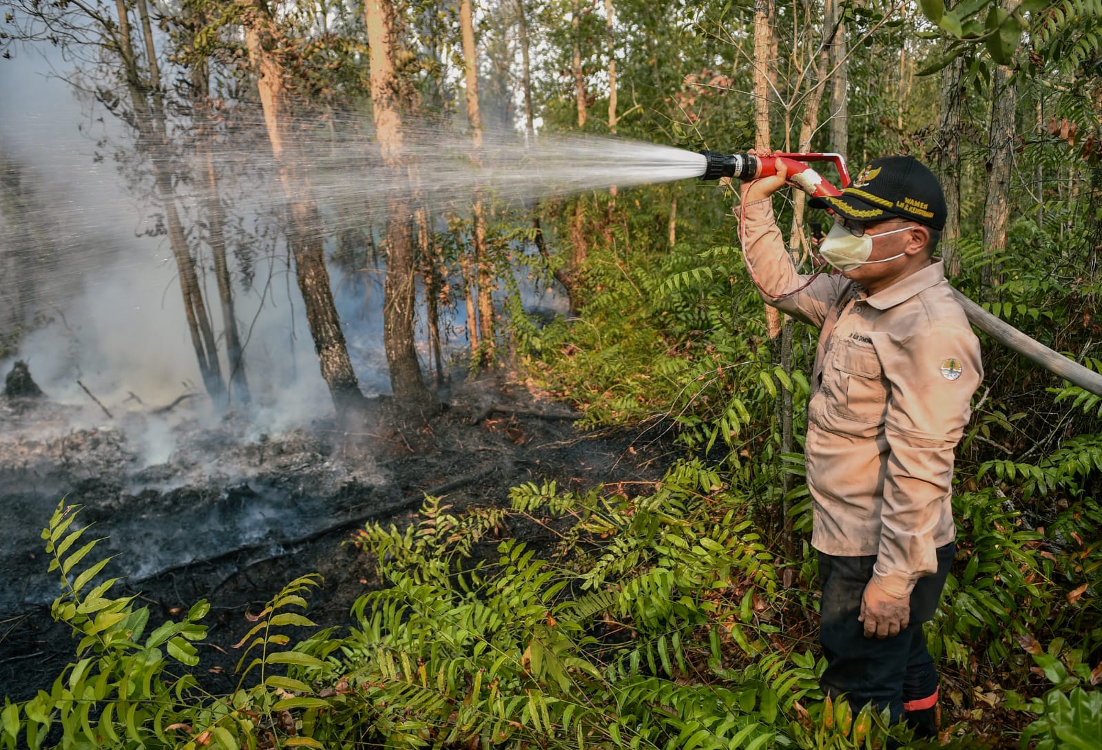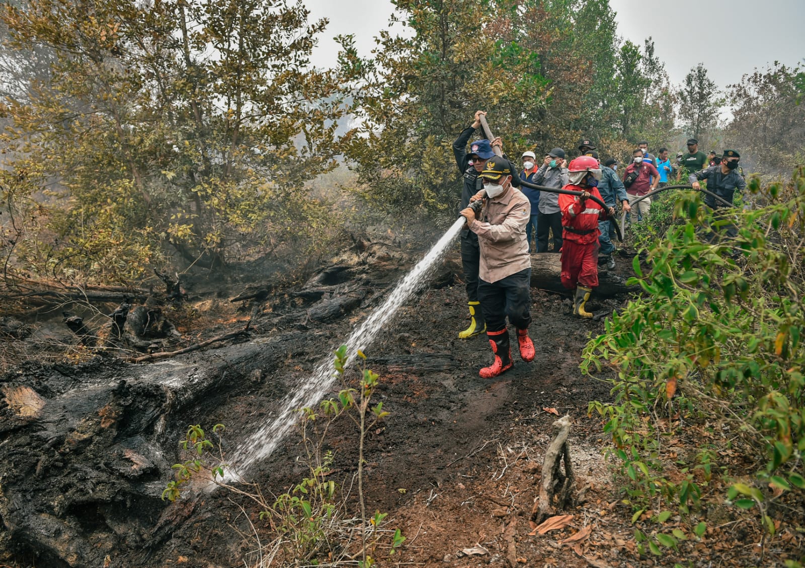 Wakil Menteri Lingkungan Hidup dan Kehutanan, Alue Dohong turun langsung memimpin upaya pemadaman karhutla di Tumbang Nusa, Kabupaten Pulang Pisau, Kalimantan Tengah, Sabtu, (30/9/2023).