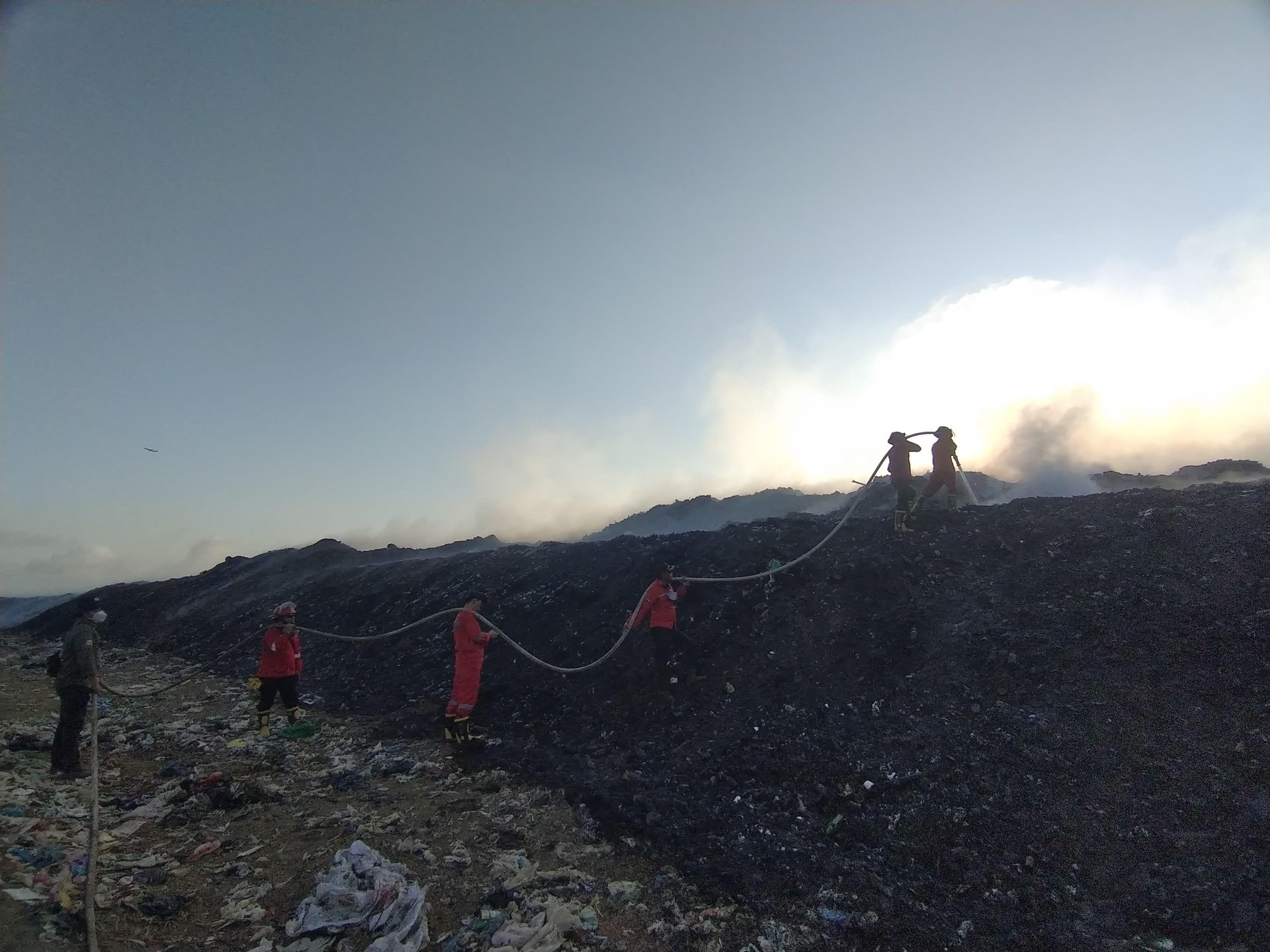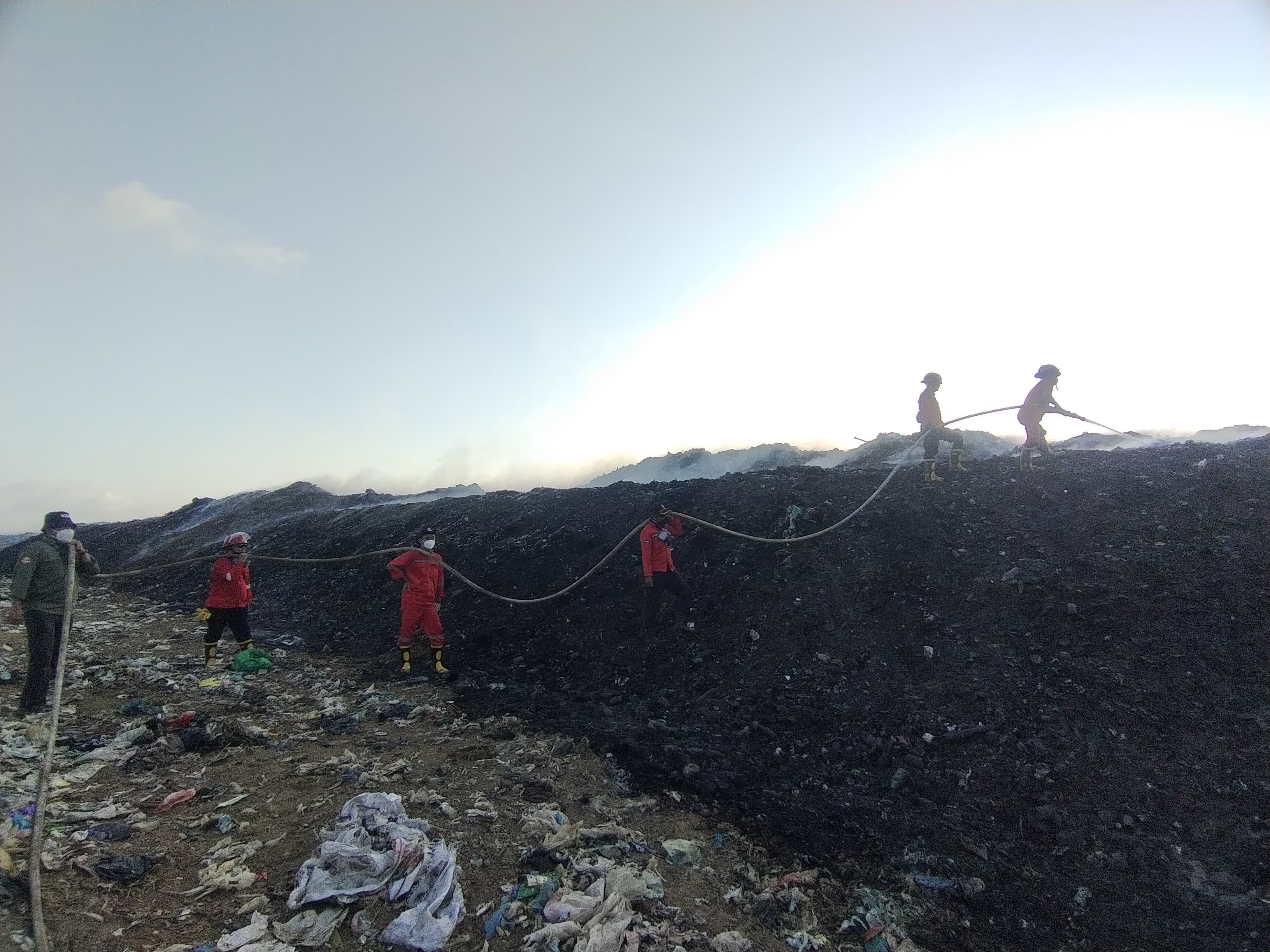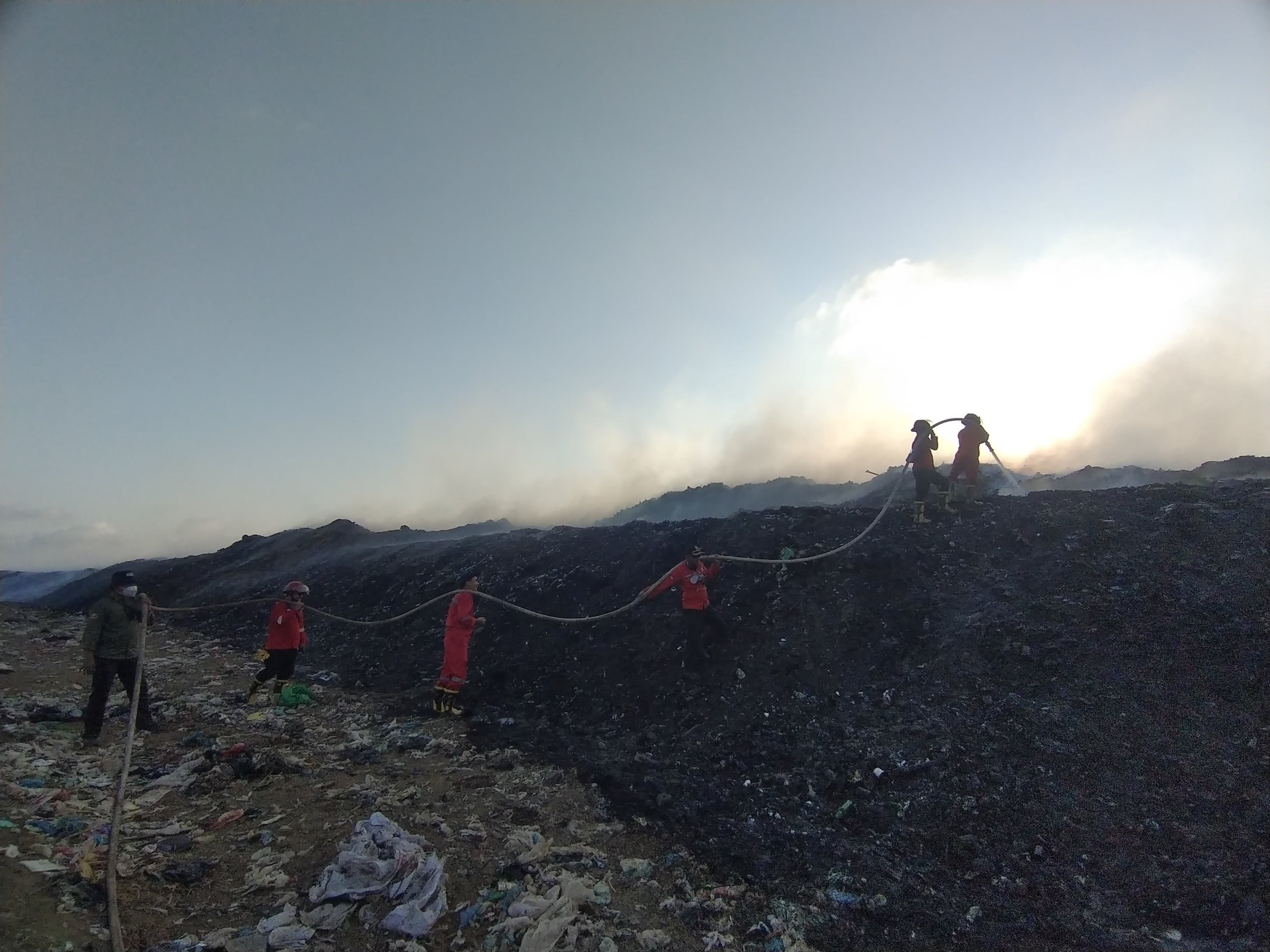 "Pemadaman dimulai dengan mencampur zat aditif dan air pada tandon kemudian disemprotkan pada permukaan areal terbakar dan injeksi ke dalam tumpukan sampah untuk memastikan kebakaran bawah permukaan juga padam," terang Haryo.