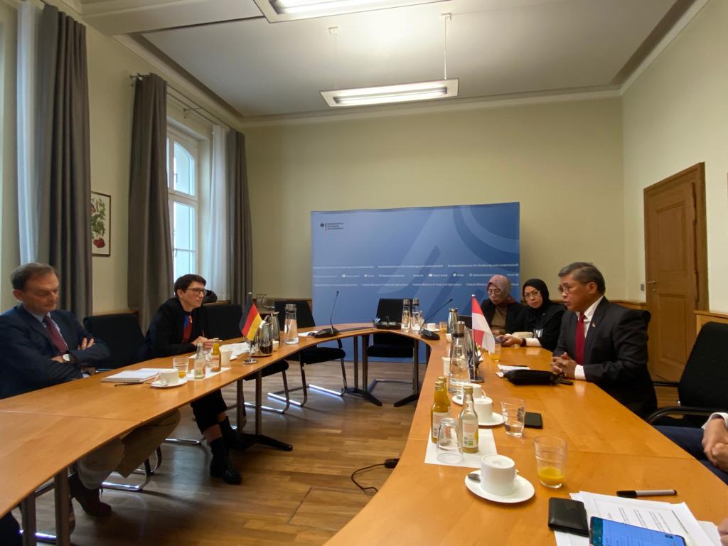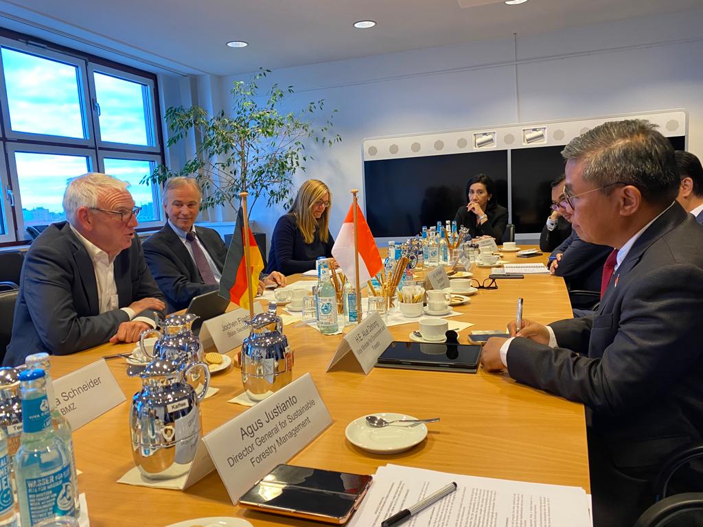 Setelah melaksanakan kunjungan kerja ke BML, Wamen LHK selanjutnya menyambangi BMZ. Delegasi Indonesia diterima oleh State Secretary Jochen Flasbarth, Staf Ahli Dr. Laura Schneider, dan Dr. Andreas Foerster.