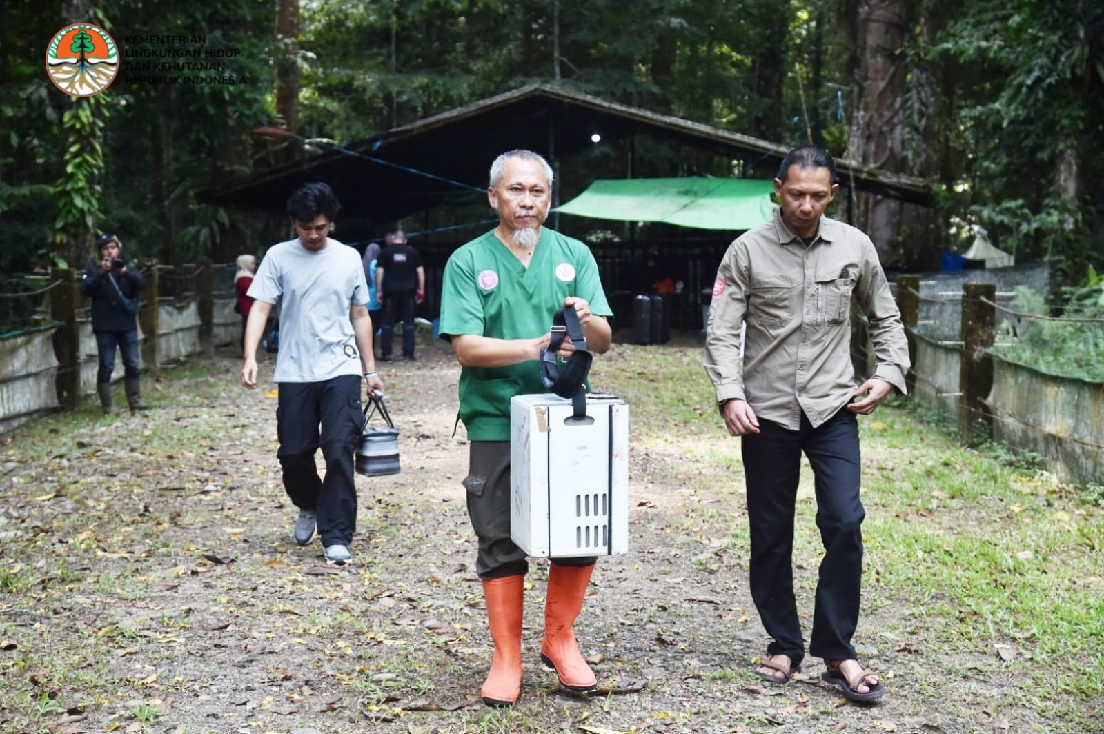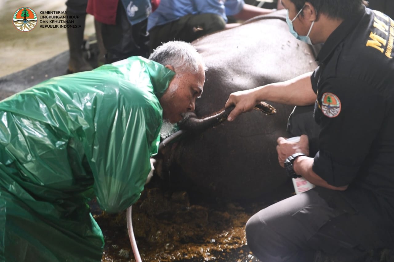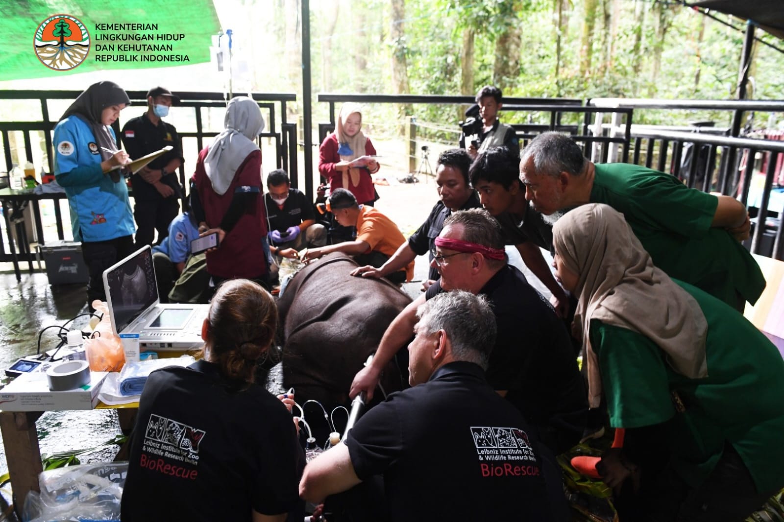 Proses ini dibantu oleh tim IPB University dan Leibniz Institute for Zoo and Wildlife Research (IZW) Jerman, serta tim dokter hewan dari Taman Nasional Way Kambas, ALERT Indonesia, dan Yayasan Badak Indonesia (YABI).