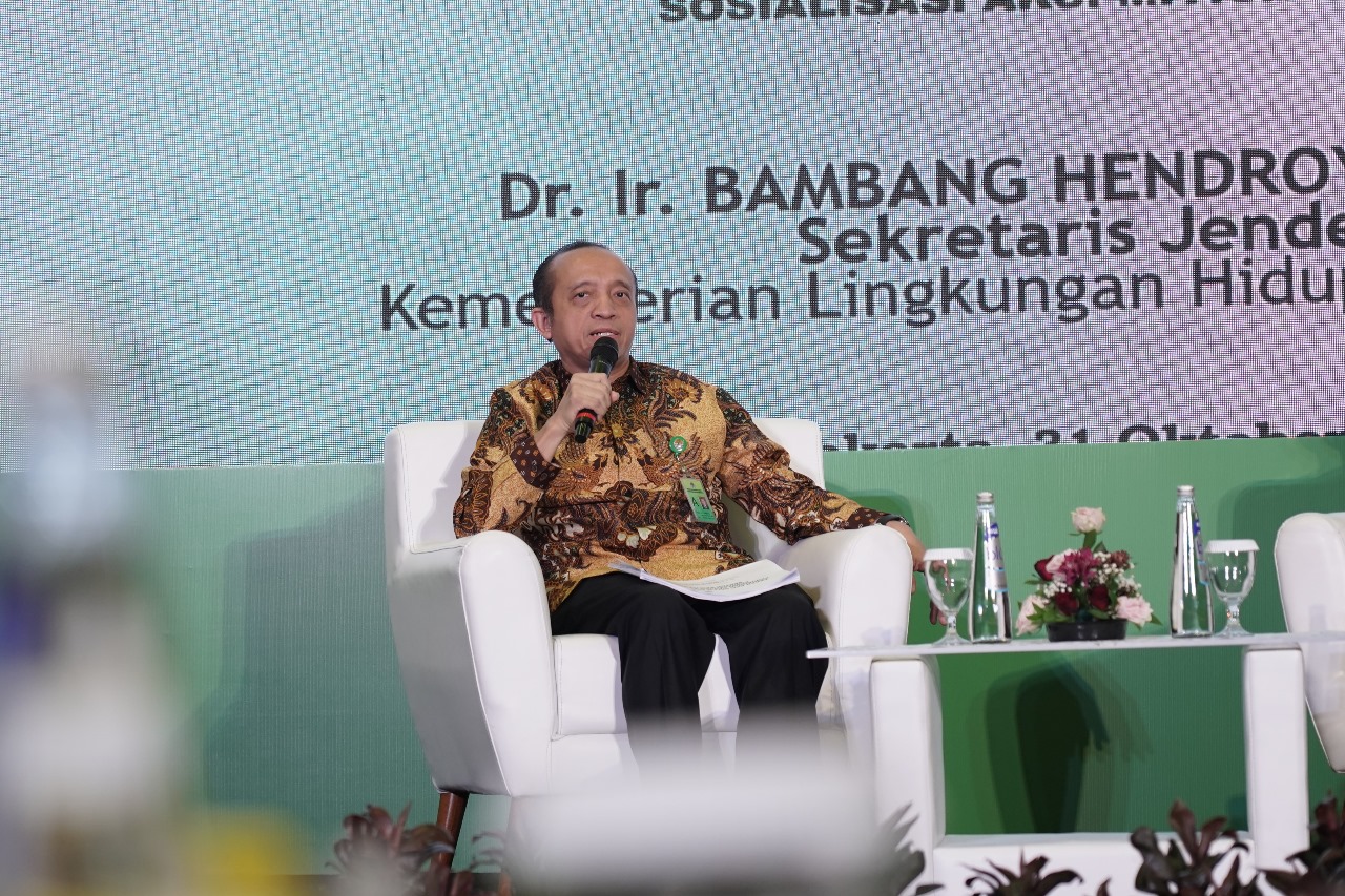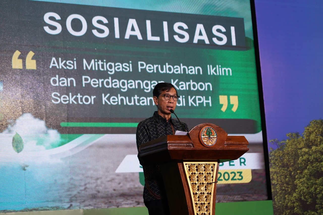 Sekretaris Jenderal Kementerian Lingkungan Hidup dan Kehutanan (KLHK) Bambang Hendroyono pada saat membuka Sosialisasi Aksi Mitigasi Perubahan Iklim dan Perdagangan Karbon Sektor Kehutanan pada KPH di Jakarta (31/10/2023), menyampaikan bahwa tatanan yang sudah dikuatkan secara yuridiksi yuridis, diperlukan juga regulasi teknis yang kuat dan didukung oleh Peraturan Menteri dan kemampuan manajerial diperlukan dari Kepala Dinas Provinsi yang membidangi kehutanan dan Kepala UPTD KPH. Selanjutnya, para pihak ini secara bersama-sama membantu Gubernur dalam mendukung penurunan emisi Gas Rumah Kaca (GRK).