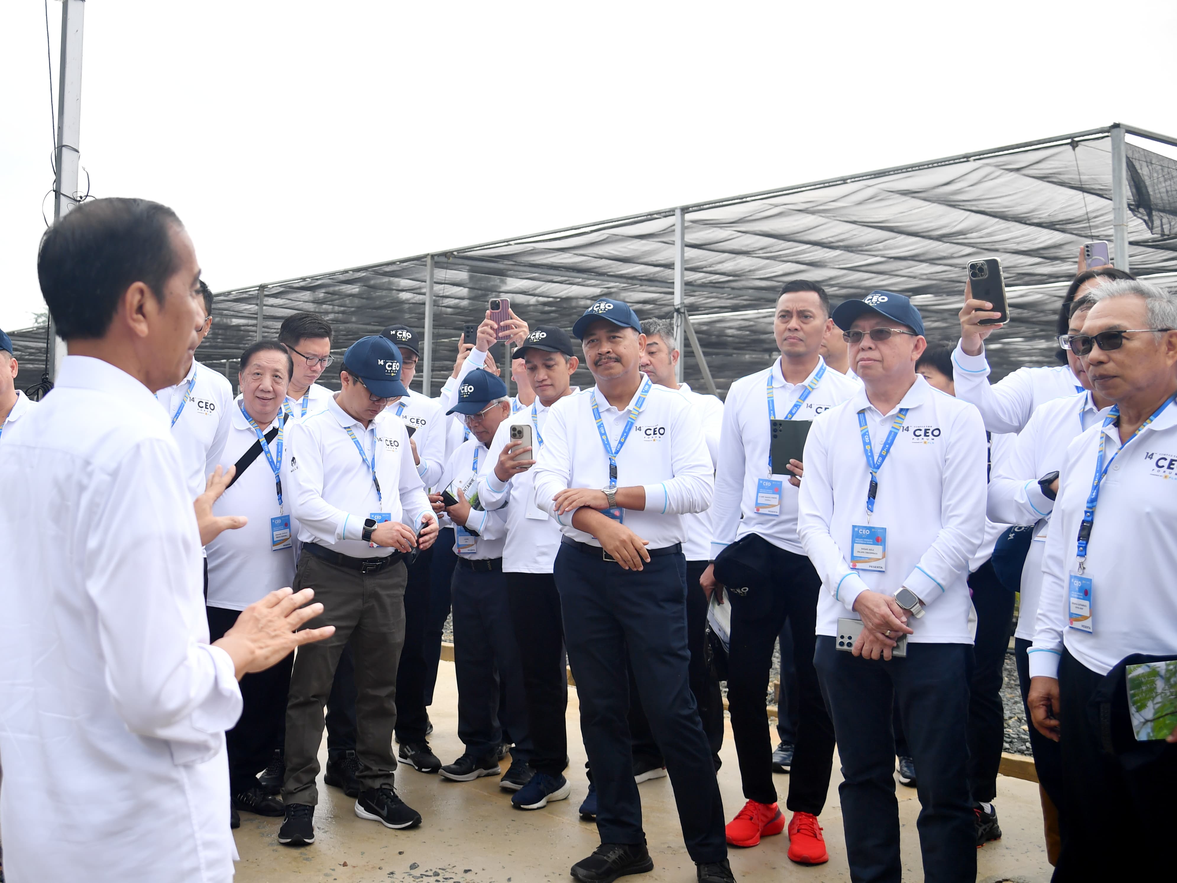Presiden Joko Widodo, didampingi Menteri LHK Siti Nurbaya, mengunjungi Persemaian Mentawir, pada Kamis, 2 November 2023. Pada kunjungannya kali ini, Presiden Jokowi mengajak sejumlah pimpinan dunia usaha berkeliling menyusuri areal persemaian, dan menjelaskan sejumlah hal terkait persemaian dan pembangunan Ibu Kota Nusantara (IKN).