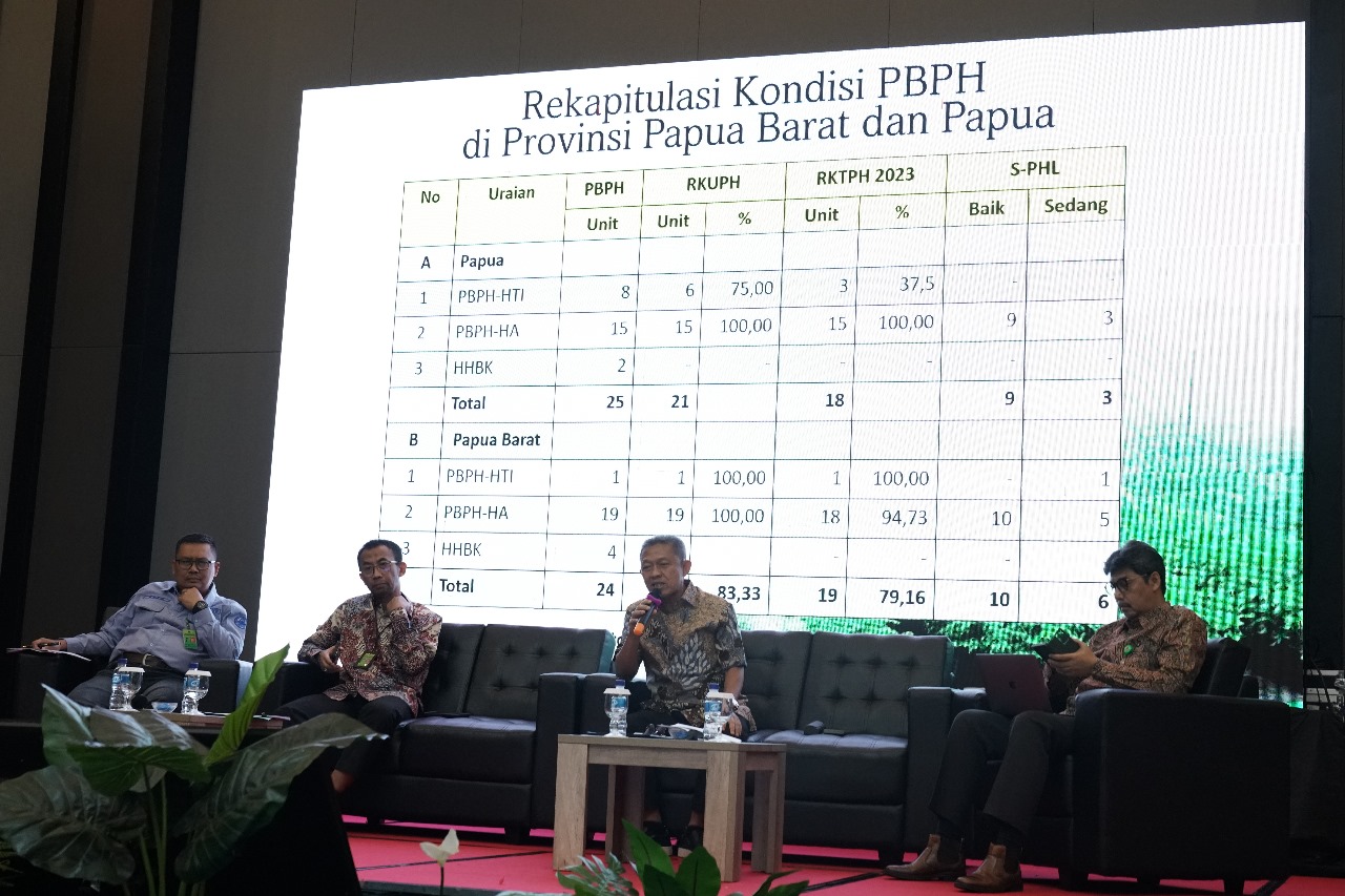 Drasospolino menyampaikan lebih lanjut bahwa regional Wilayah Papua meliputi Provinsi Papua, Papua Barat, Papua Tengah, Papua Selatan, Papua Pegunungan dan Papua Barat Daya serta Regional Maluku yang meliputi Maluku dan Maluku Utara, memiliki potensi yang besar dalam mendukung penurunan emisi GRK dari Sektor Kehutanan, terutama melalui aksi mitigasi bidang Pengelolaan Hutan Lestari. Saat ini jumlah Perizinan Berusaha Pemanfaatan Hutan (PBPH) yang berada di Regional Papua dan Regional Maluku sebanyak 85 Unit, terdiri atas regional Papua 49 Unit dan Regional Maluku 36 Unit. Dari 85 Unit PBPH-HA dan HT di wilayah Regional Papua dan Maluku yang telah memiliki Sertifikat PHL Baik sebanyak 22 Unit dan Sertifikat PHL Sedang sebanyak 23 Unit.