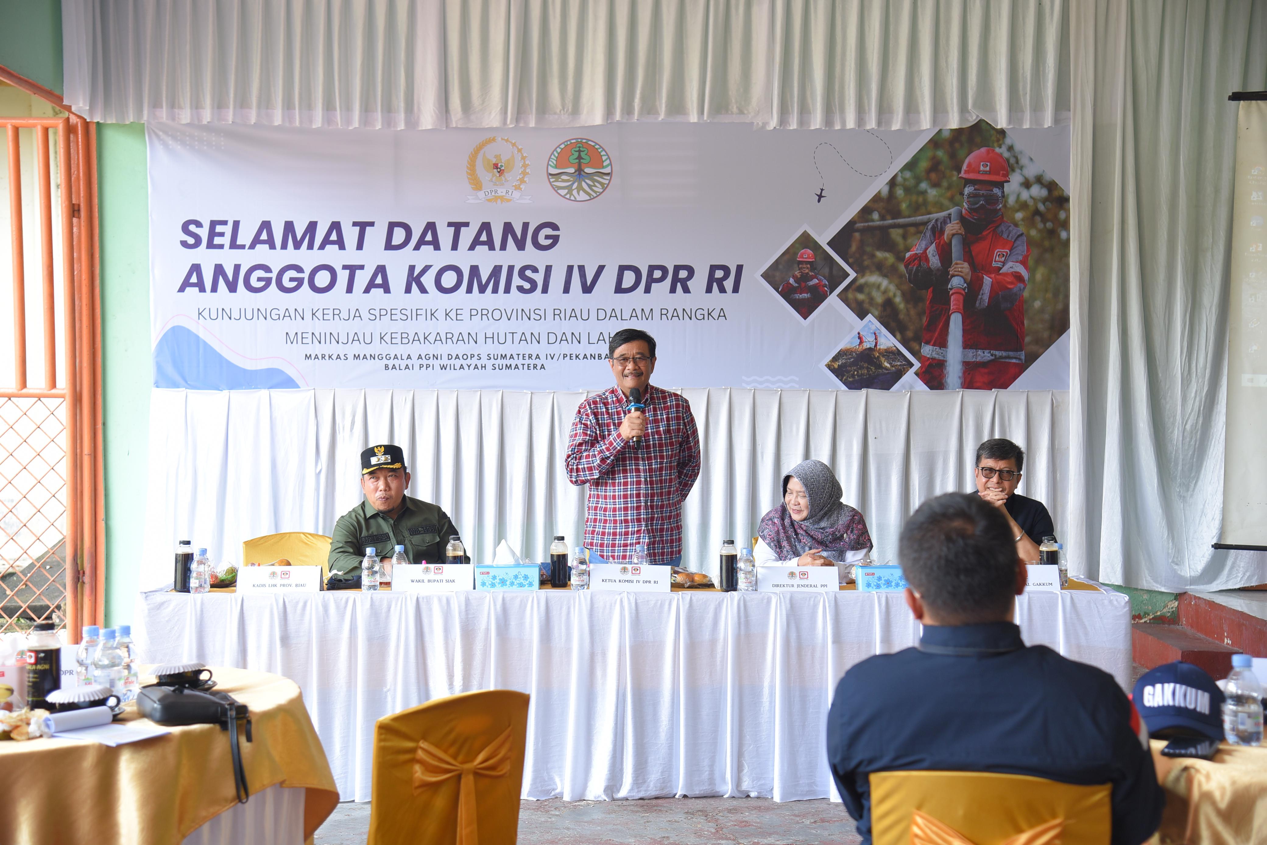 Direktur Jenderal Pengendalian Perubahan Iklim dan Direktur Jenderal Penegakan Hukum Lingkungan Hidup dan Kehutanan Kementerian Lingkungan Hidup dan Kehutanan mendampingi kunjungan kerja Komisi IV DPR RI ke Provinsi Riau, Jumat (17/11).
