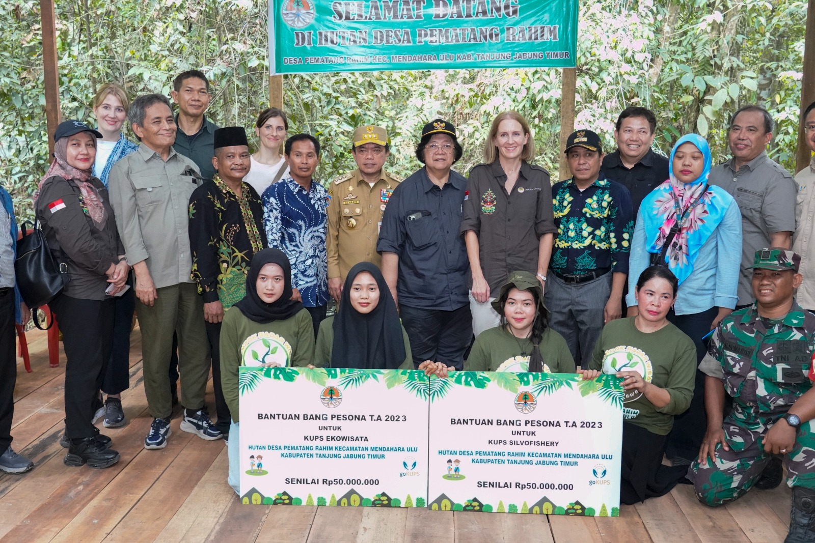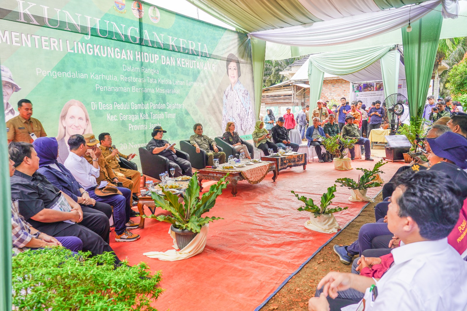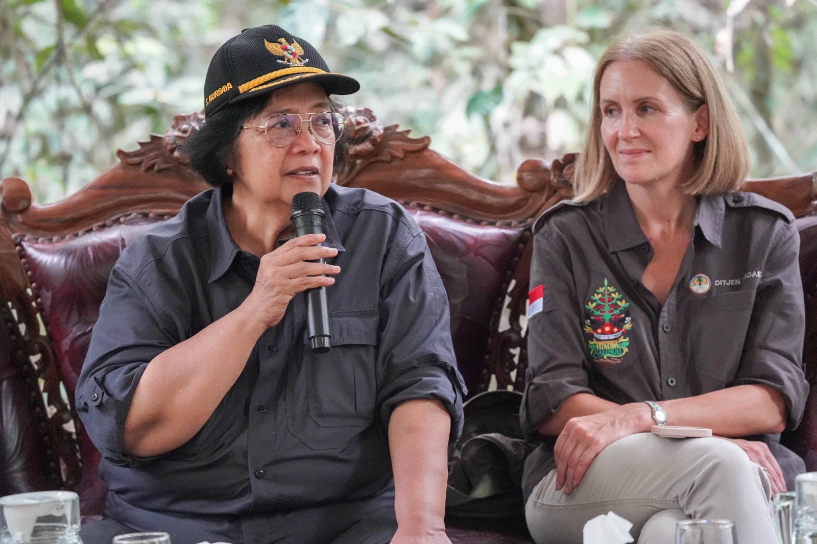 Menteri LHK Siti Nurbaya bersama Duta Besar Kerajaan Norwegia untuk Indonesia Rut Kruger Giverin melakukan kunjungan ke Provinsi Jambi pada Minggu-Senin (19-20 November 2023). Kunjungan selama dua hari ini dilakukan untuk mengapresiasi keberhasilan Pemerintah Daerah dan masyarakat Jambi dalam pengelolaan gambut, pengendalian kebakaran hutan dan lahan, serta implementasi perhutanan sosial.