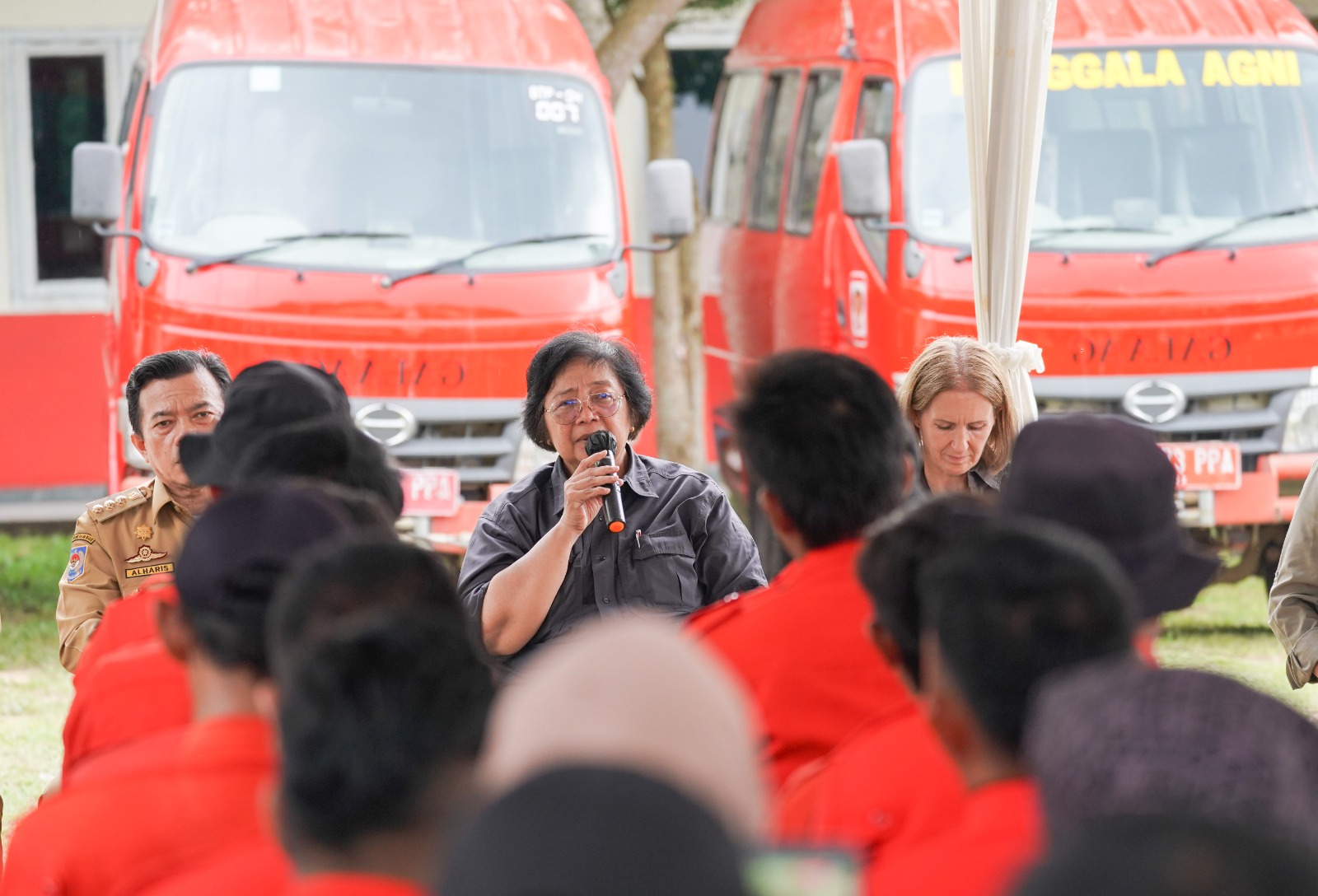 Menteri Siti mengungkapkan berkat kerja bersama, kita telah melewati dengan baik masa-masa sulit kebakaran hutan dan lahan Tahun 2023. Dirinya menyampaikan apresiasi atas upaya penyelesaian dan mengatasi kesulitan tersebut yang terlihat dari ketatnya rantai kerja sama Pemerintah Pusat, Pemerintah Provinsi, kawan-kawan di lapangan, dan masyarakat di masing-masing tingkat tapak serta tentu saja Manggala Agni.