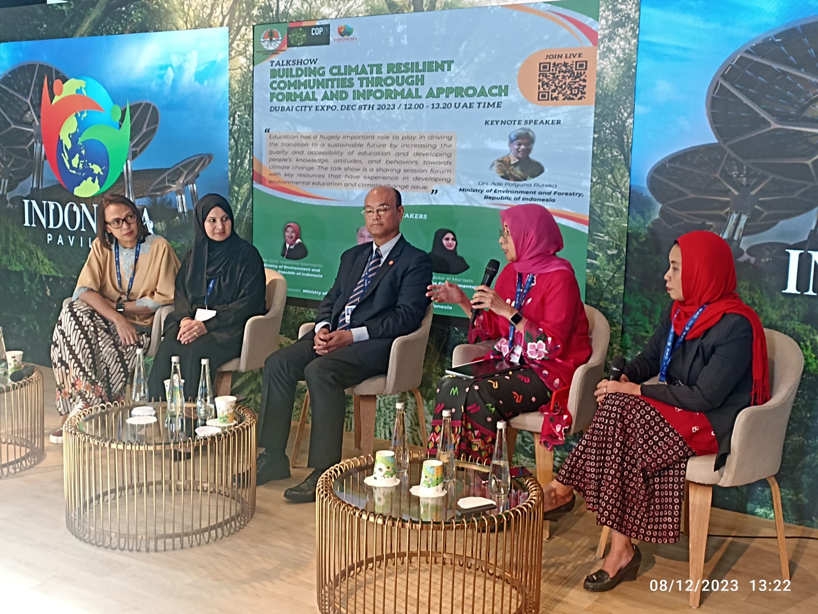 "Melalui pendidikan formal maupun informal, masyarakat akan lebih memahami, memiliki kapasitas, dan memiliki daya tahan sebagai solusi dalam aksi iklim," kata Ade dalam sambutan video pada diskusi yang digelar di Paviliun Indonesia, Konferensi Perubahan Iklim COP28 UNFCCC, Dubai, Jumat, 8 Desember, 2023.
