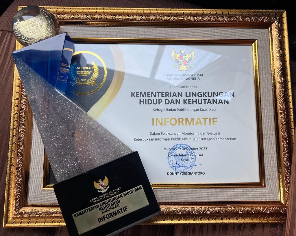 Kementerian LHK sendiri dalam 5 tahun berturut-turut pada periode 2019-2023 menerima anugerah dari KIP dengan kategori “informatif”. Tentu saja kedepannya Kementerian LHK terus berkomitmen untuk memberikan pelayanan informasi dengan baik dan mendorong penyebarluasan informasi publik terkait capaian kinerja dan keberhasilan program pembangunan lingkungan hidup dan kehutanan, melalui transformasi digital maupun kolaborasi dengan stakeholder di berbagai bidang, guna mewujudkan reformasi birokrasi dan transparansi pemerintahan, sebagaimana amanat Undang-Undang Nomor 14 Tahun 2008.