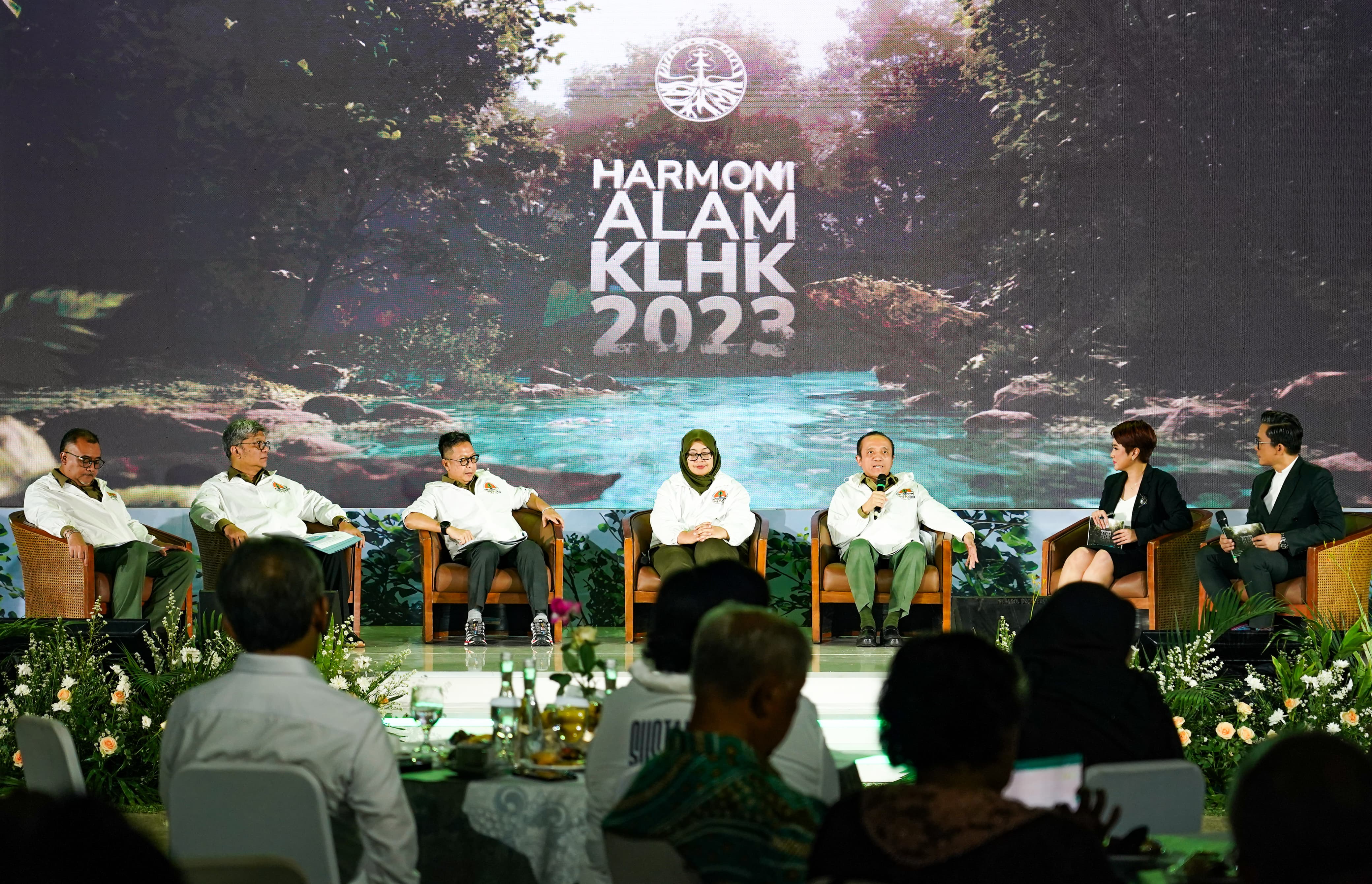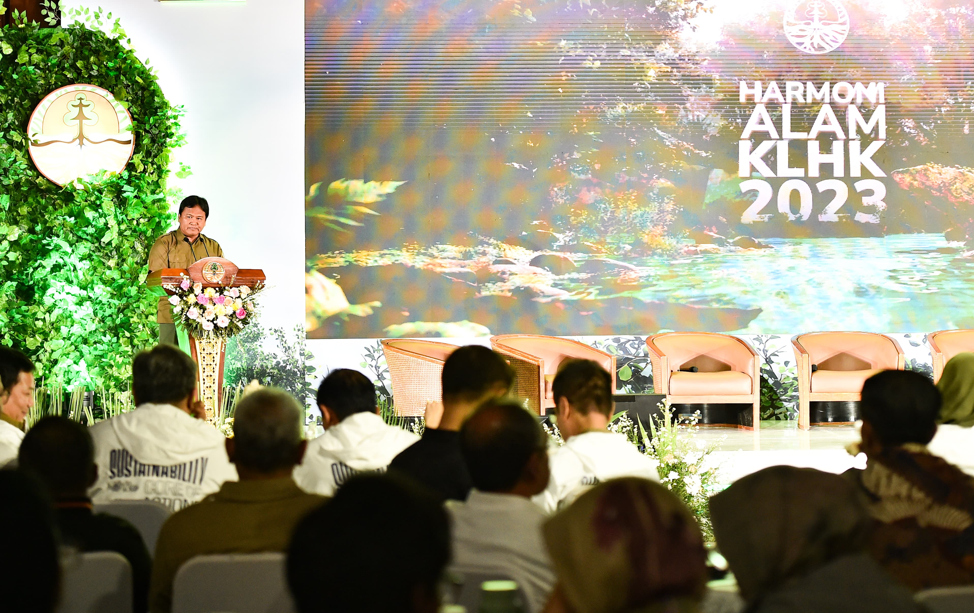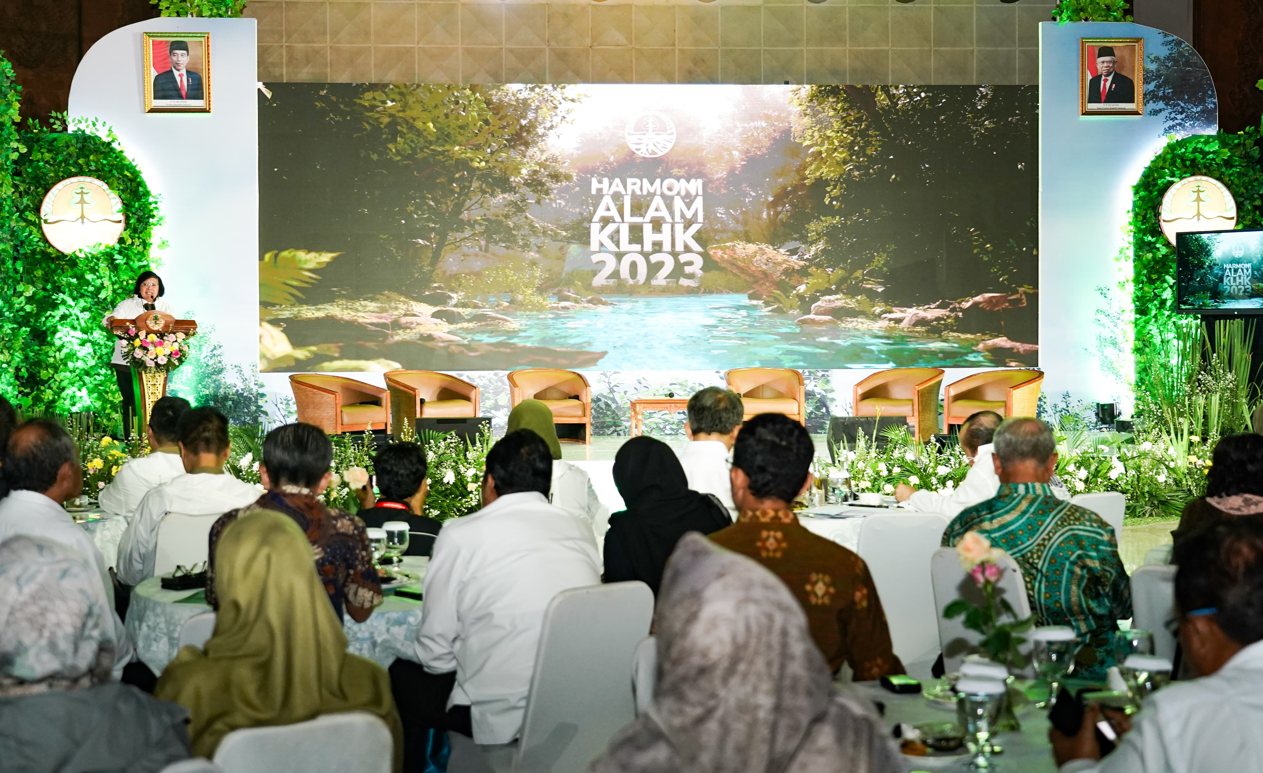Pada kesempatan ini juga, Menteri LHK, Siti Nurbaya menyampaikan catatannya terkait kinerja KLHK 2023 yang ia gambarkan sebagai penegasan konsistensi kebijakan dasar, kebijakan operasional, implementasi program dan dampak pembangunan.
