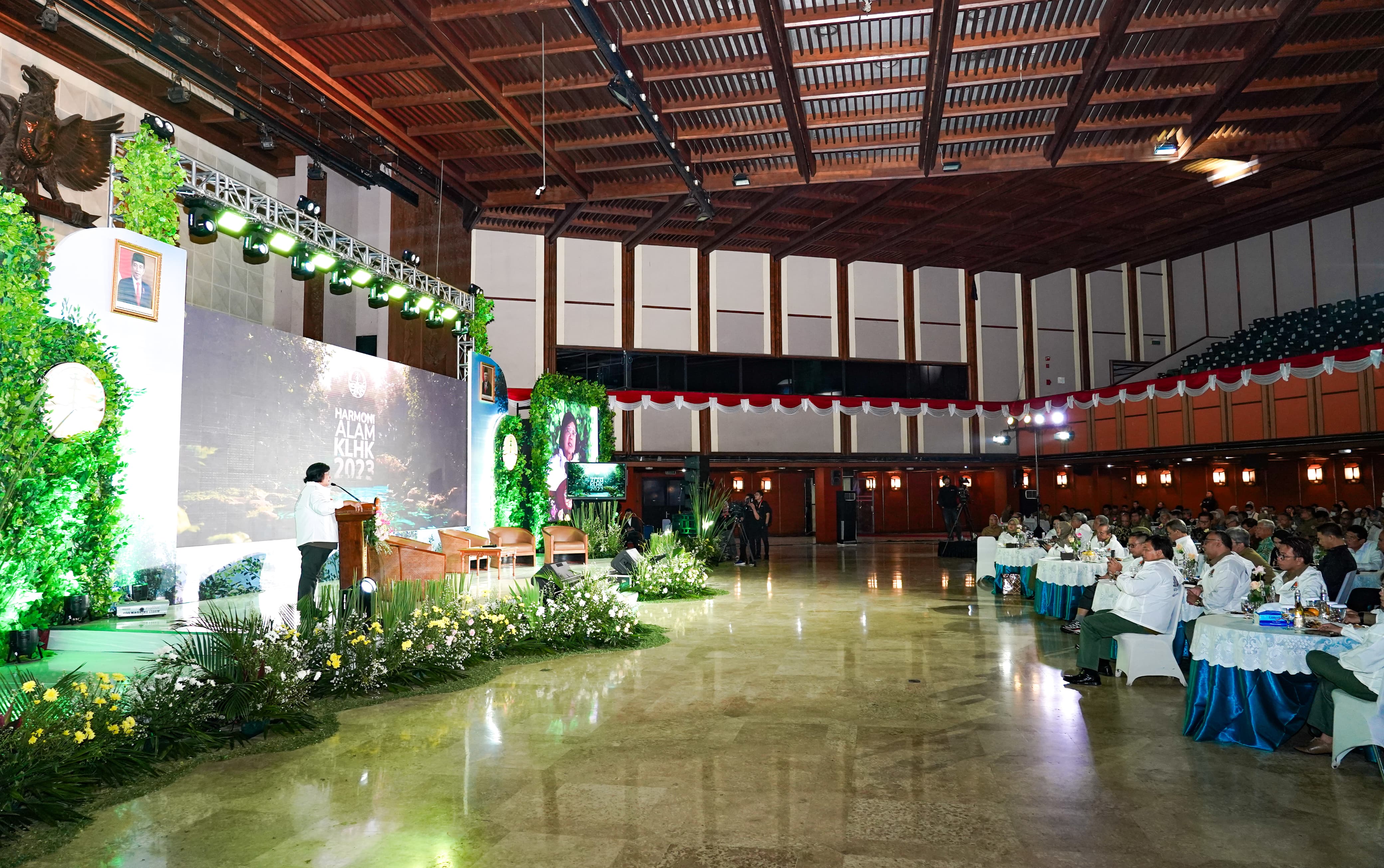 Kementerian Lingkungan Hidup dan Kehutanan (KLHK), melaksanakan refleksi kinerja tahun 2023 di Auditorium Dr. Soedjarwo, Gd. Manggala Wanabakti, Jakarta (28/12/2023). Pada kegiatan ini, sebanyak 13 Pejabat Tinggi Madya KLHK menyampaikan capaian kinerja unit kerja masing-masing tahun 2023.