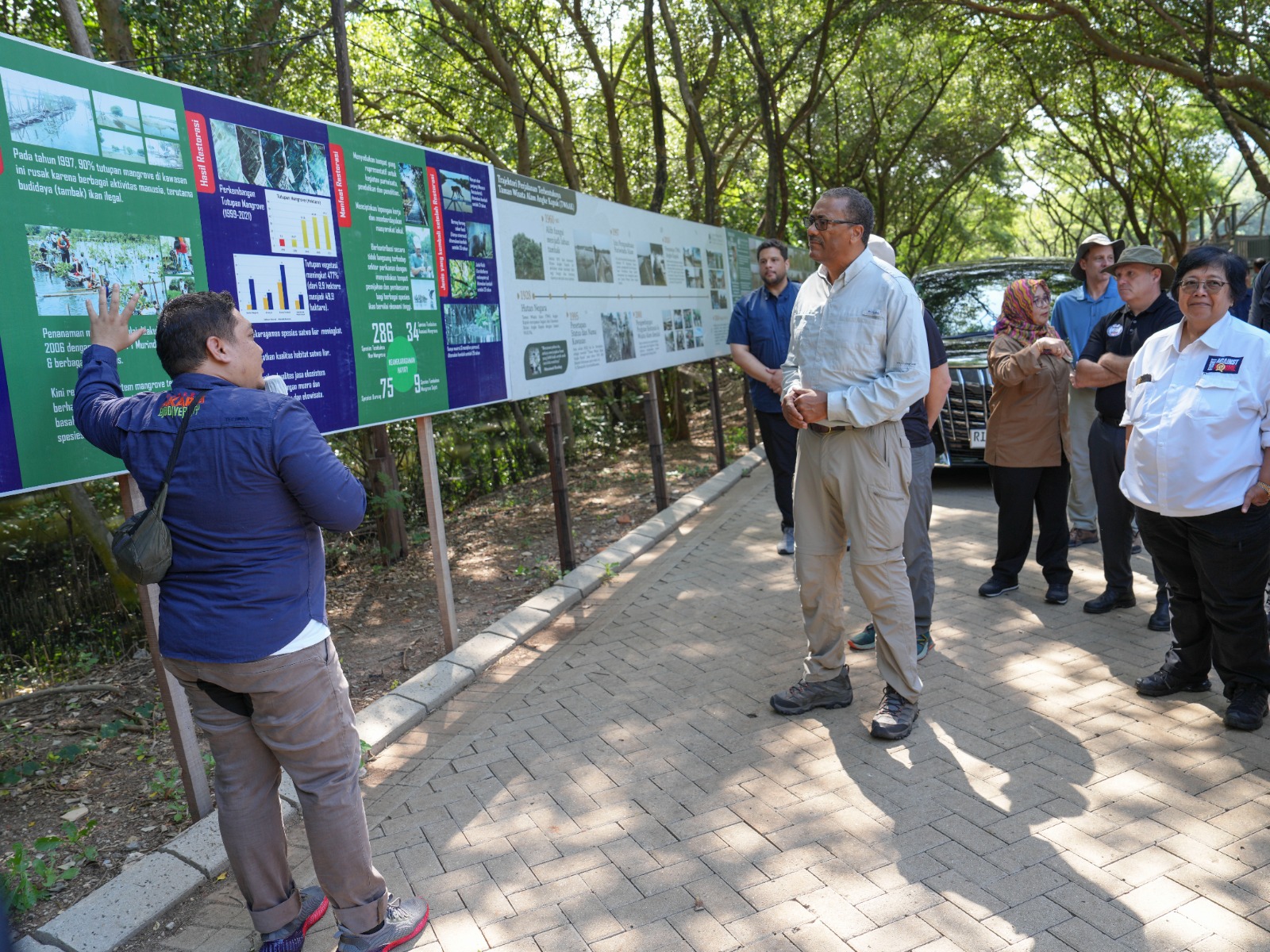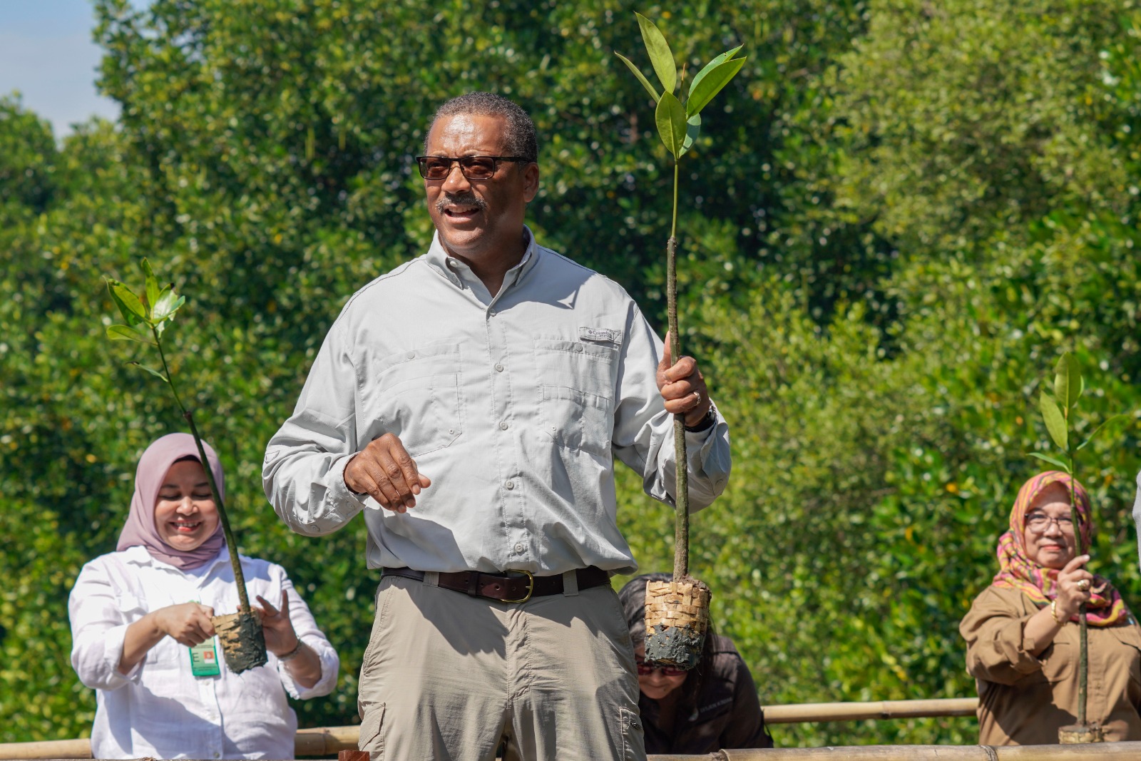 Turut mendampingi dan terlibat dalam rangkaian kegiatan penanaman mangrove di TWA Angke Kapuk hari ini yaitu Wakil Menteri LHK Alue Dohong, Kepala BRGM Hartono, Direktur USAID Indoensia Jeff P Cohen, perwakilan Kedubes AS, serta Pejabat Tinggi Madya dan Pratama lingkup KLHK dan BRGM. (y)
