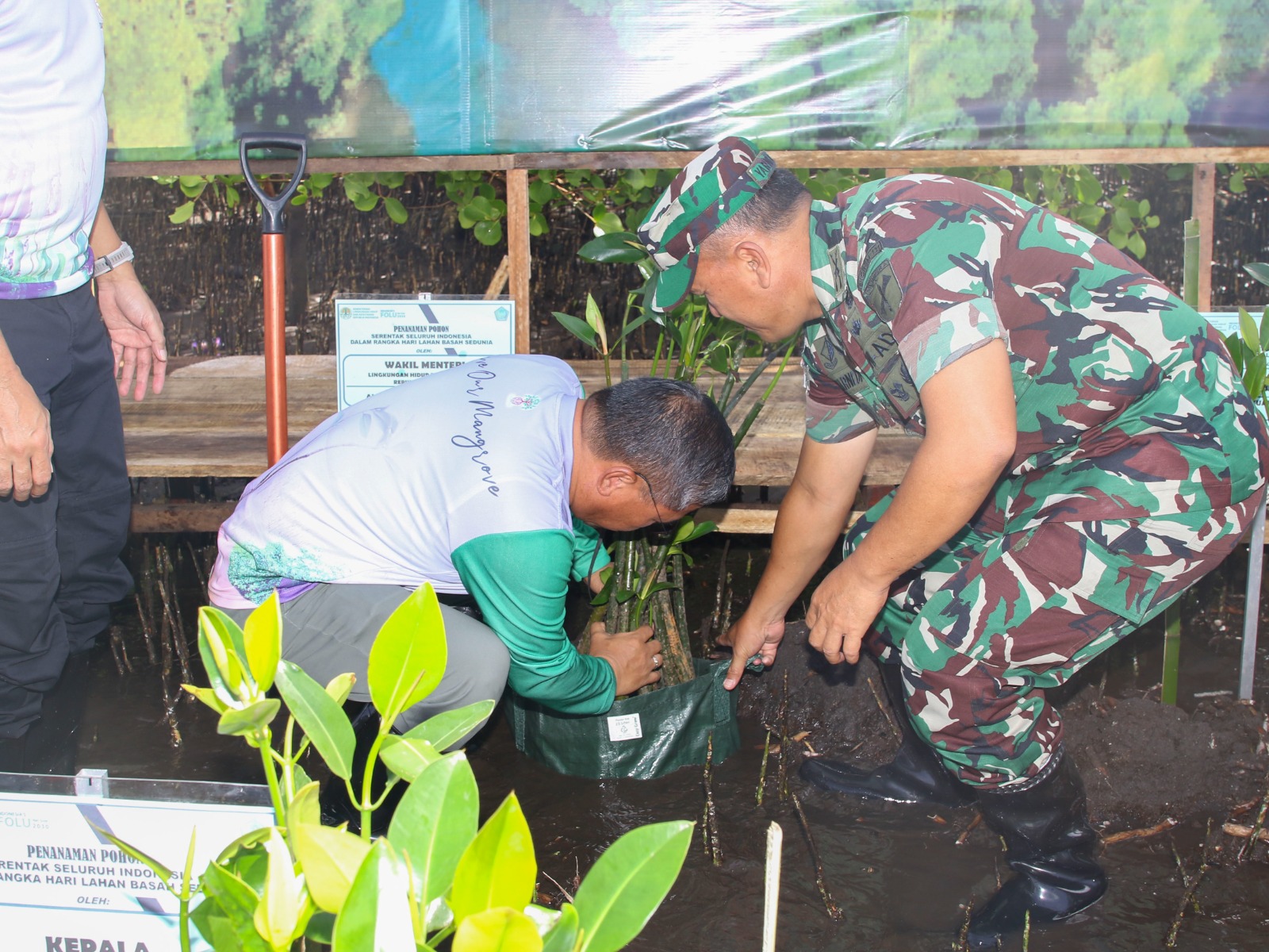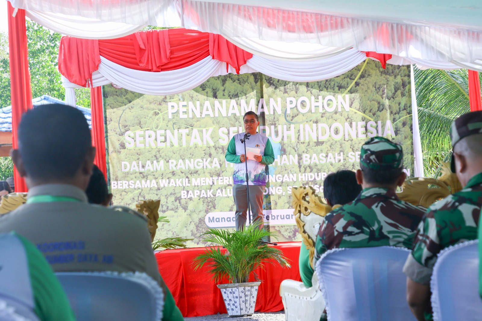 "Selain itu juga menjadi catatan bahwa bulan Februari ini kita memperingati hari lahan basah dan untuk itu antara lain kita juga menanam di areal lahan basah seperti mangrove," kata Wamen Alue.