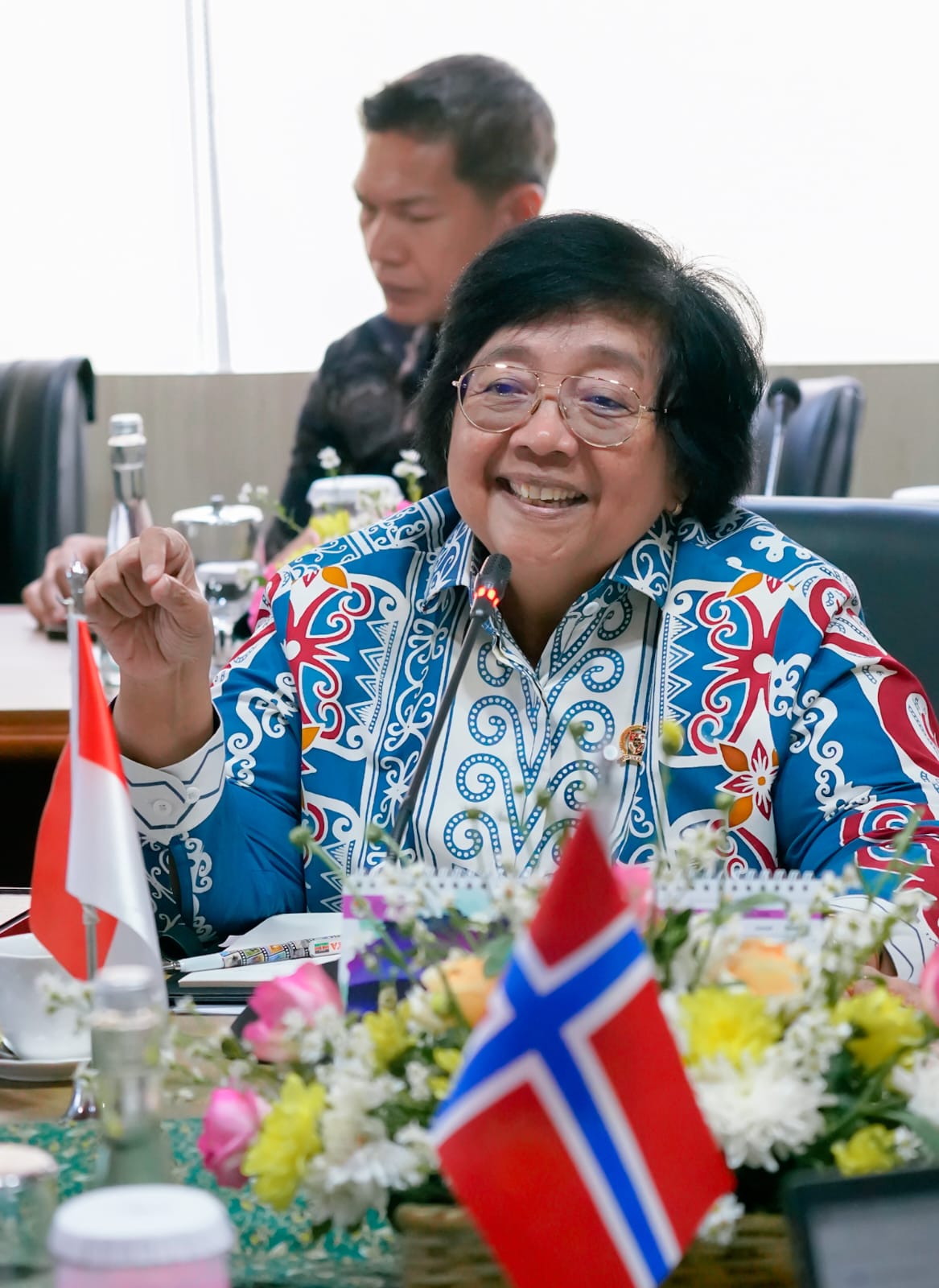 Menteri Lingkungan Hidup dan Kehutanan (LHK) Siti Nurbaya melakukan pertemuan dengan Duta Besar Norwegia untuk Indonesia, Rut Kruger Giverin di Jakarta, Senin (12/2). Pertemuan ini dilakukan untuk membahas lebih lanjut implementasi pendanaan tahap ke-4 atas kerjasama kedua negara.