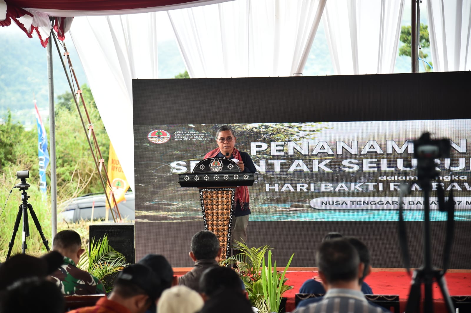 Wakil Menteri Lingkungan Hidup dan Kehutanan (LHK) Alue Dohong memimpin kegiatan penanaman serentak seluruh Indonesia di kawasan Taman Nasional Gunung Rinjani (TNGR), Kabupaten Lombok Timur, Provinsi Nusa Tenggara Barat (NTB) pada Kamis (7/3). Kegiatan penanaman pohon kali ini bertepatan dengan momentum Hari Bakti Rimbawan yang diperingati setiap tanggal 16 Maret.