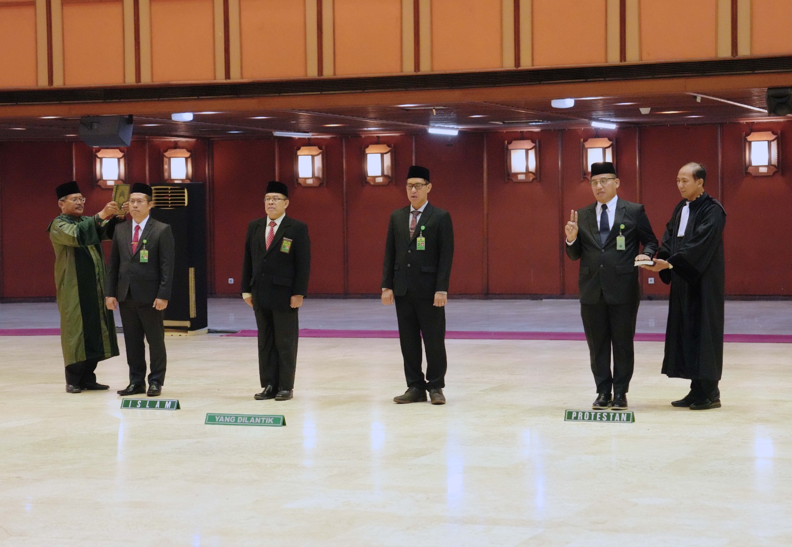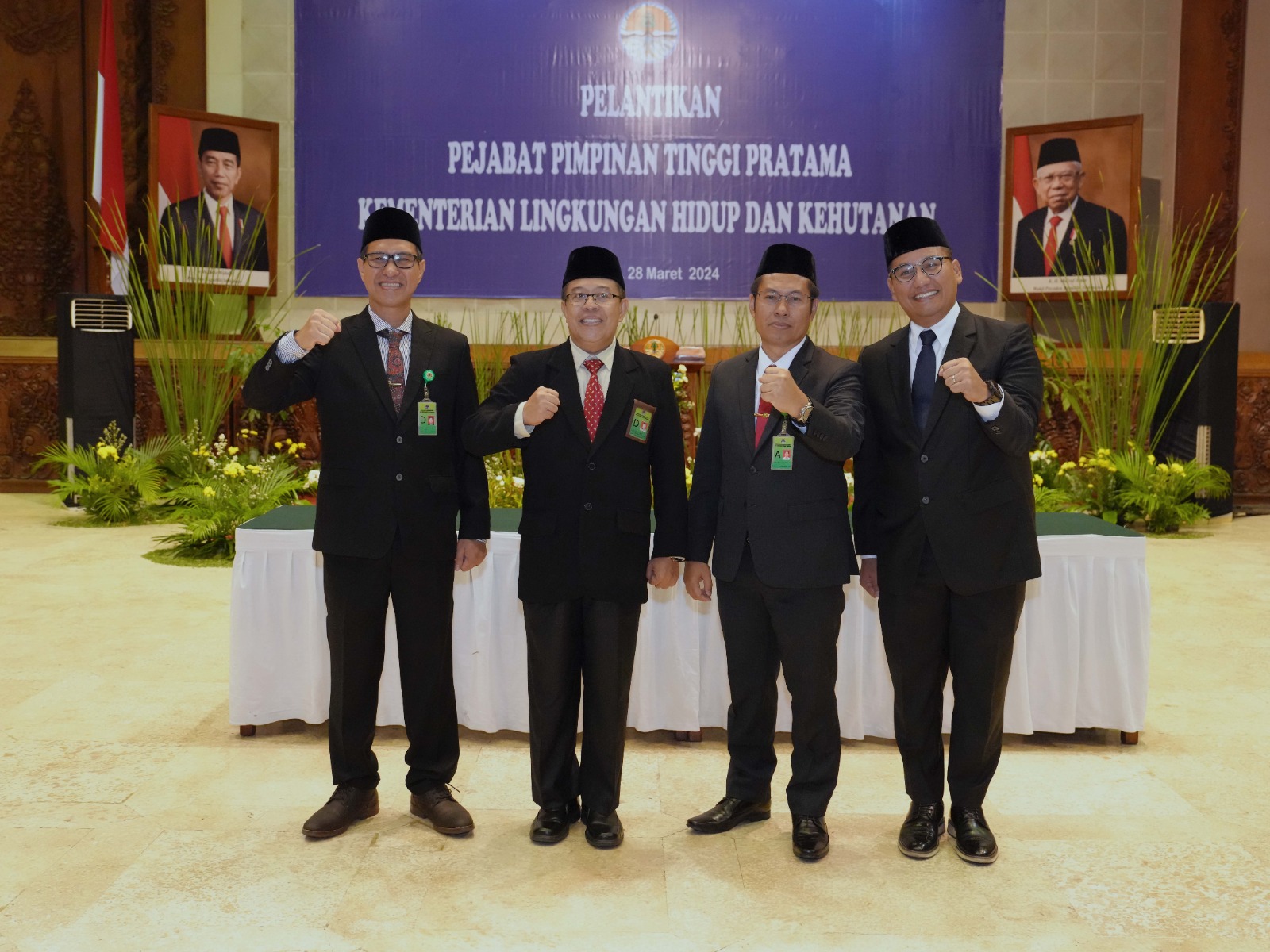 Menteri Lingkungan Hidup dan Kehutanan (LHK) Siti Nurbaya melantik empat Pejabat Tinggi Pratama (Eselon II) lingkup KLHK di Jakarta, Kamis (28/3). Keempat pejabat yang dilantik yaitu U. Mamat Rahmat sebagai Kepala Biro Hubungan Masyarakat, Edi Sulistyo Heri Susetyo sebagai Kepala Biro Perencanaan, Irawan Asaad sebagai Direktur Adaptasi Perubahan Iklim, dan Rudianto Saragih Napitu sebagai Direktur Pencegahan dan Pengamanan Lingkungan Hidup dan Kehutanan.