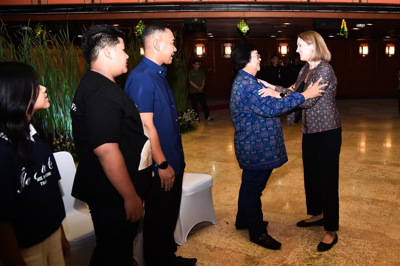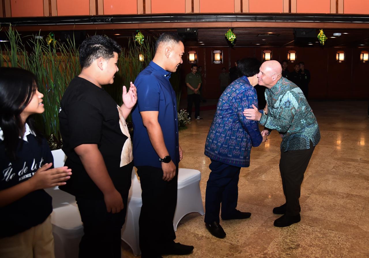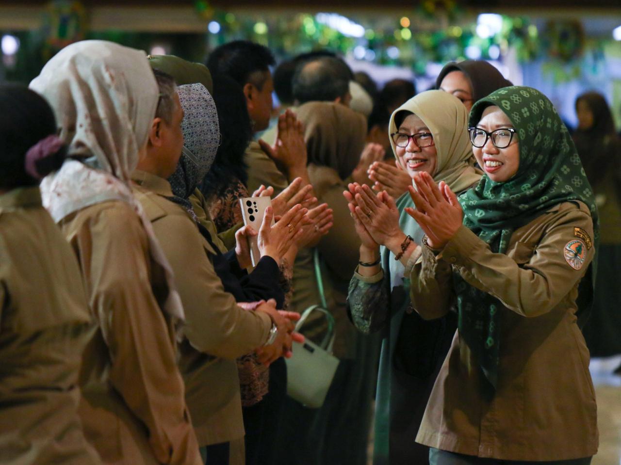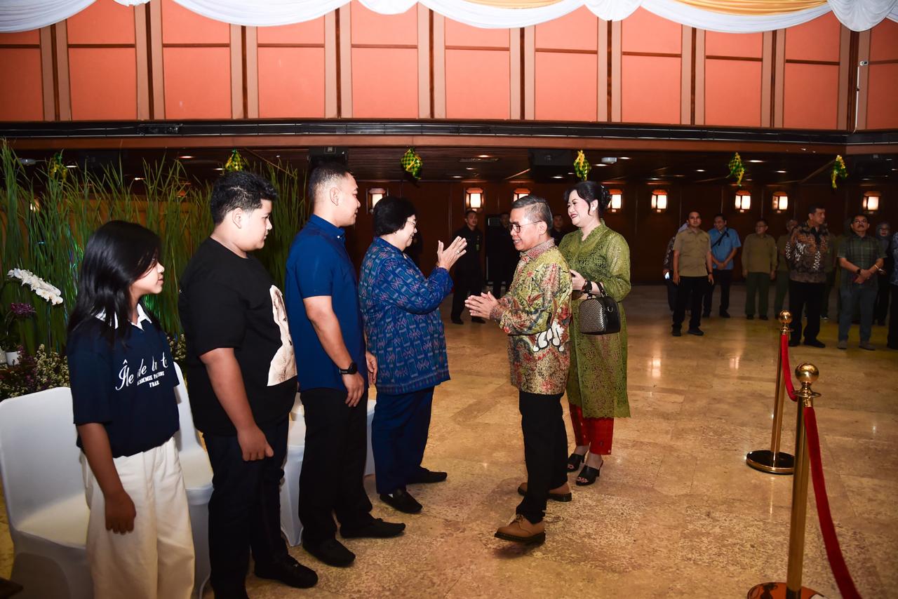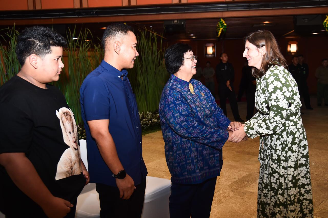 Hari pertama efektif kerja pasca libur Lebaran, Menteri Lingkungan Hidup dan Kehutanan (LHK) Siti Nurbaya menggelar halal bihalal di Auditorium Dr. Soedjarwo Gedung Manggala Wanabakti, Jakarta, pada Selasa (16/4/2024). Pada kesempatan tersebut, Menteri Siti didampingi oleh putranya yaitu Ananda Tohpati dan dua orang cucunya yaitu Shane, dan Azsyifa.