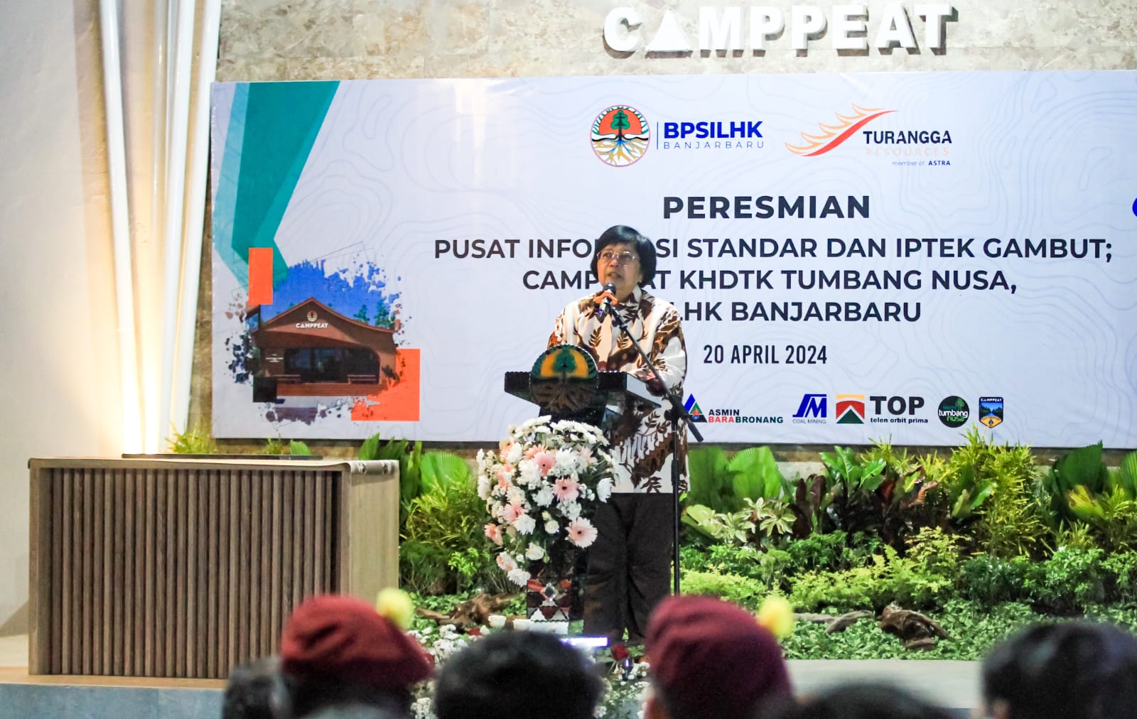 Menteri Lingkungan Hidup dan Kehutanan (LHK), Siti Nurbaya, mengunjungi dan meresmikan secara langsung Pusat Informasi Standar dan Iptek Gambut (PISIG) "Camppeat KHDTK Tumbang Nusa", pada Sabtu (20/04/2024). Pusat ini berada di Desa Tumbang Nusa, Kec. Jabiren Raya, Kab. Pulang Pisau, Provinsi Kalimantan Tengah.
