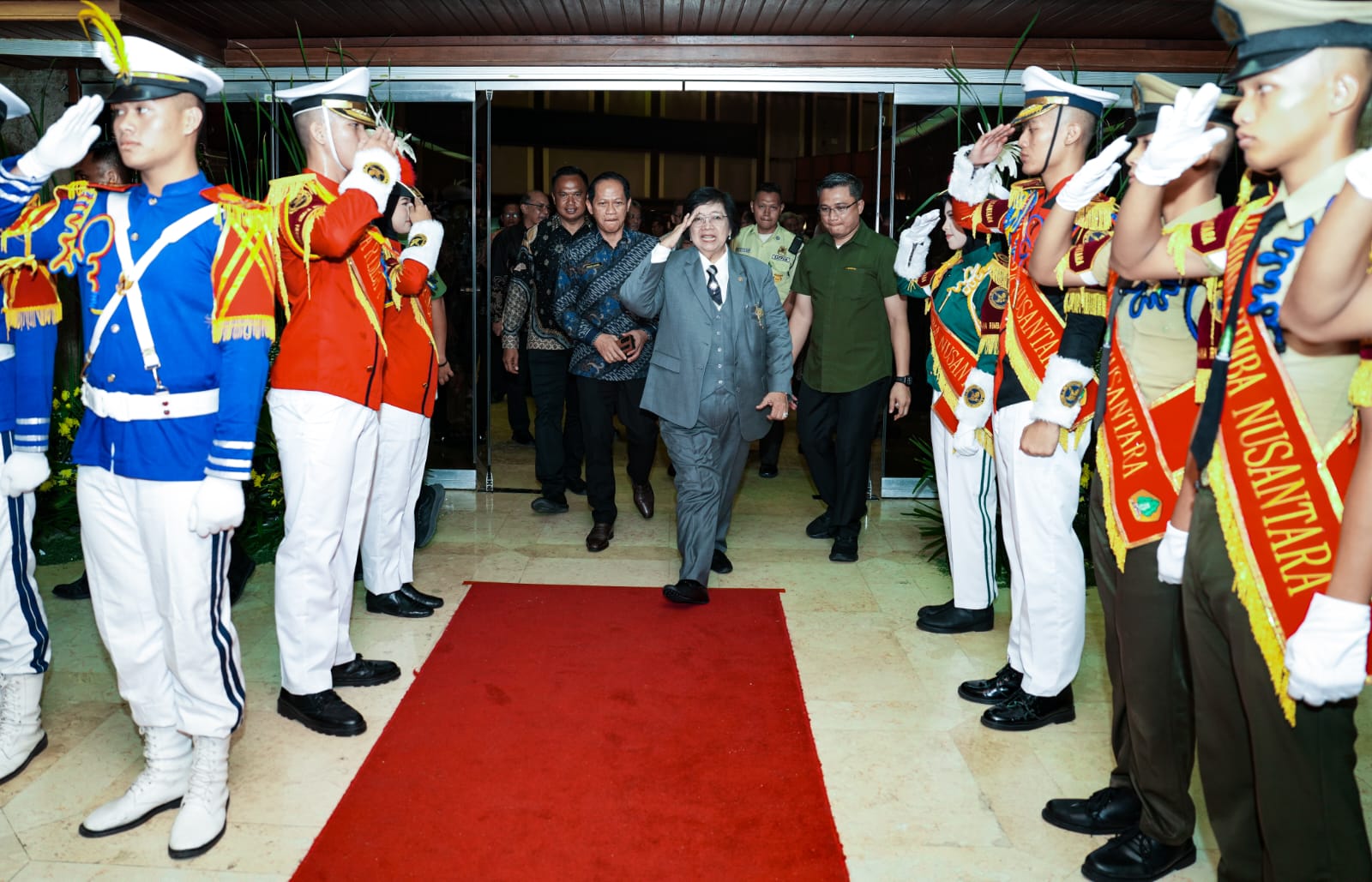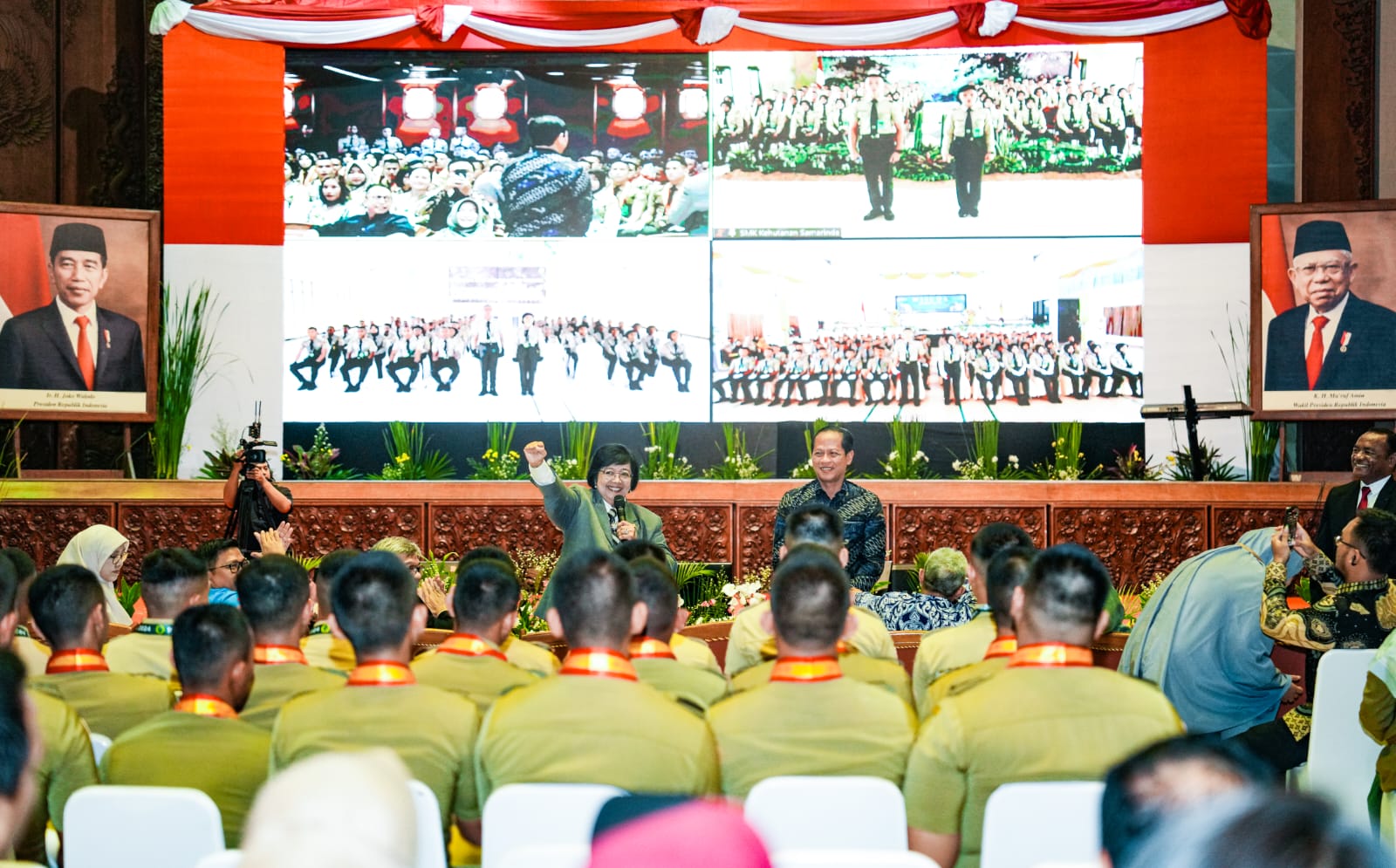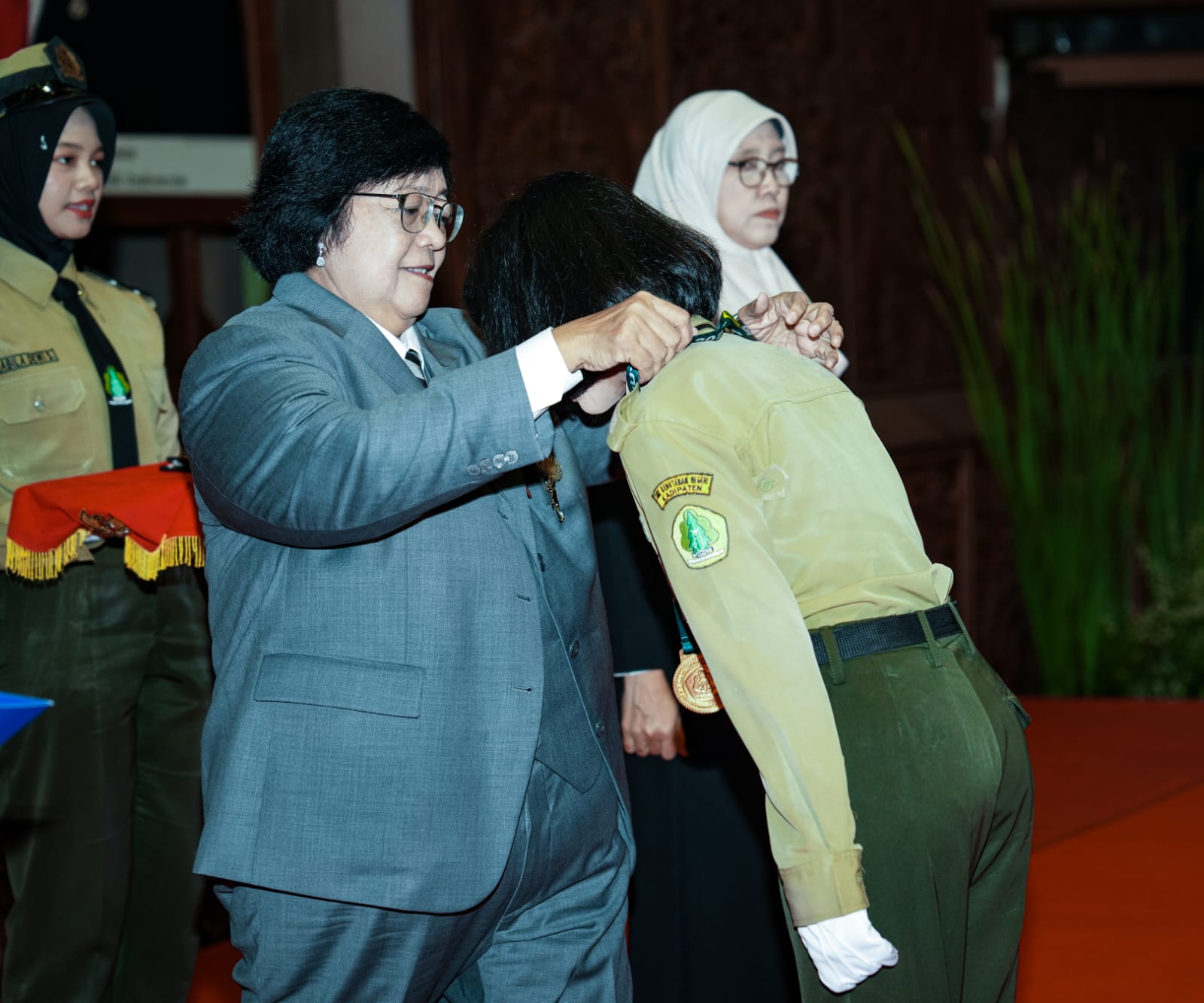 Menteri LHK, Siti Nurbaya mewisuda siswa-siswi Sekolah Menengah Kejuruan Kehutanan Negeri (SMKKN) seluruh Indonesia Tahun 2024, secara luring dan daring dari Jakarta, Selasa (14/05/2024).