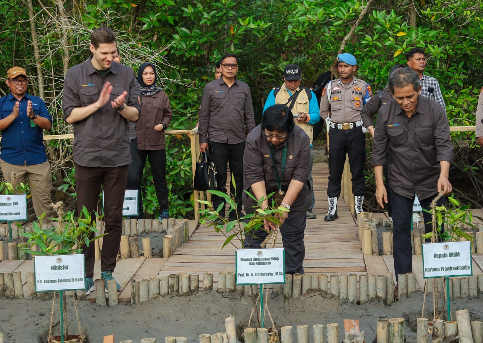 “Mereka menyaksikan sendiri kerja-kerja lapangan dan menurut mereka ini merupakan kerja mitigasi iklim yang nyata terutama untuk mangrove hingga akan mencapai 6.000 ha rehabilitasi mangrove. Dan penting sekali bahwa itu dikerjakan bersama masyarakat dalam kemitraan konservasi,” terang Menteri Siti.