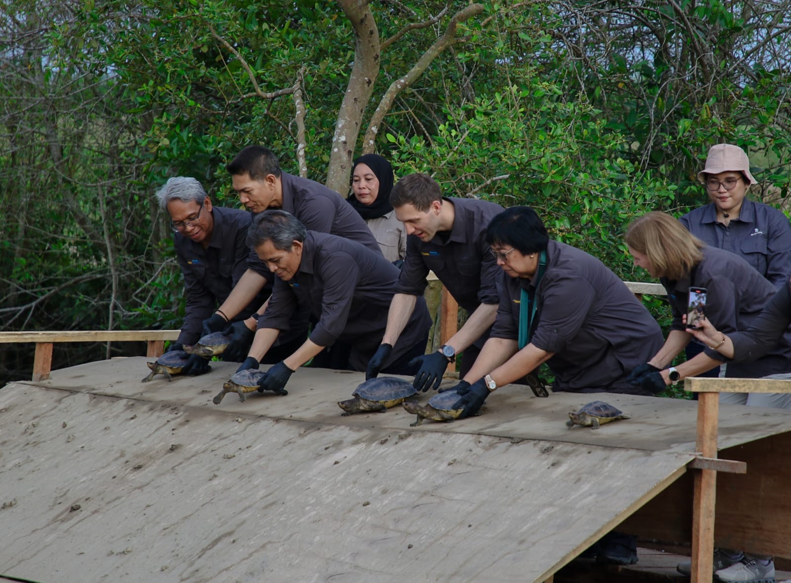 Di lokasi ini, rombongan meninjau lokasi pembibitan mangrove serta melakukan penanaman Mangrove dan pelepasliaran Satwa Liar Yang Dilindungi UU yaitu Tutong Laut.
