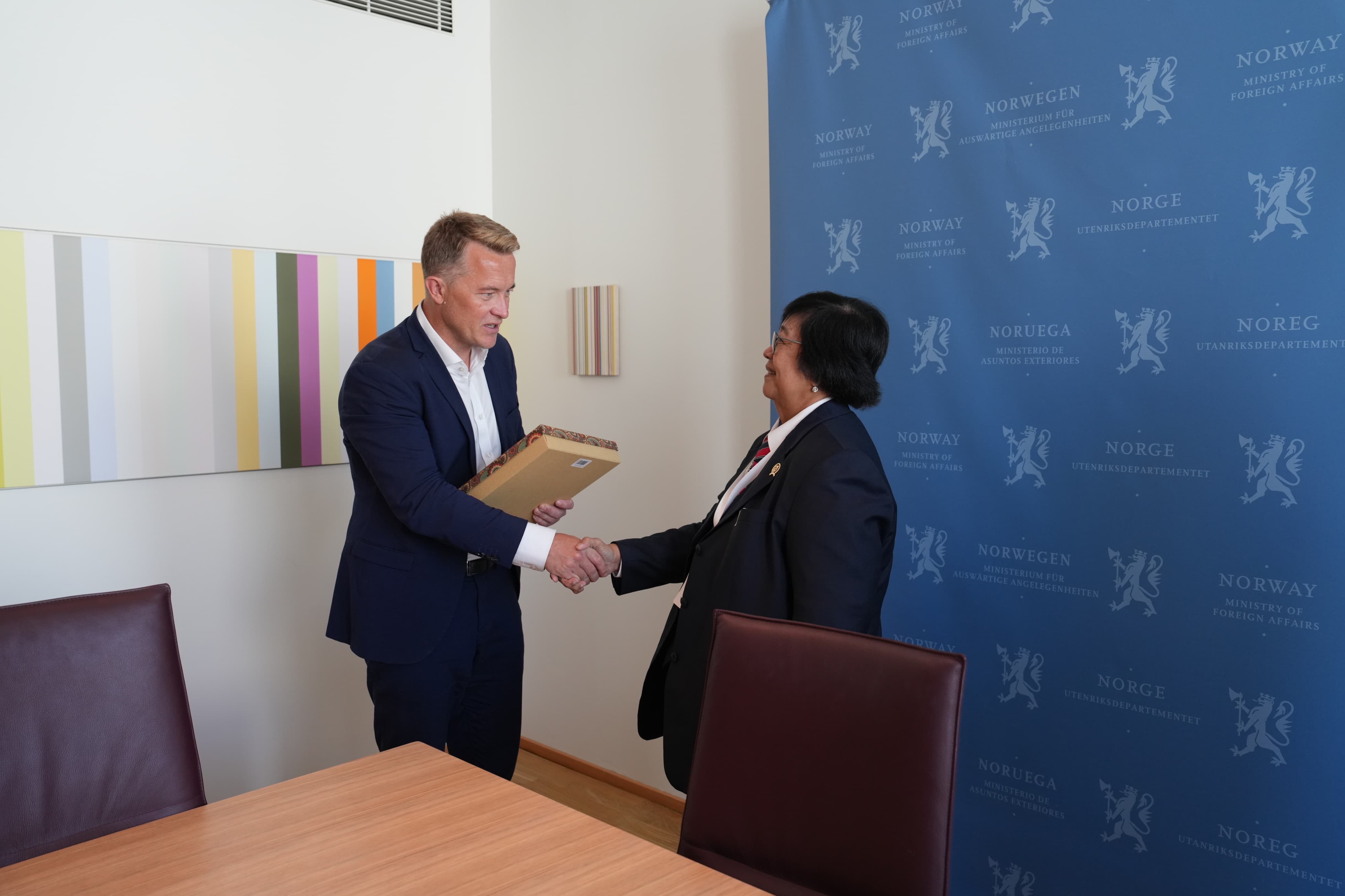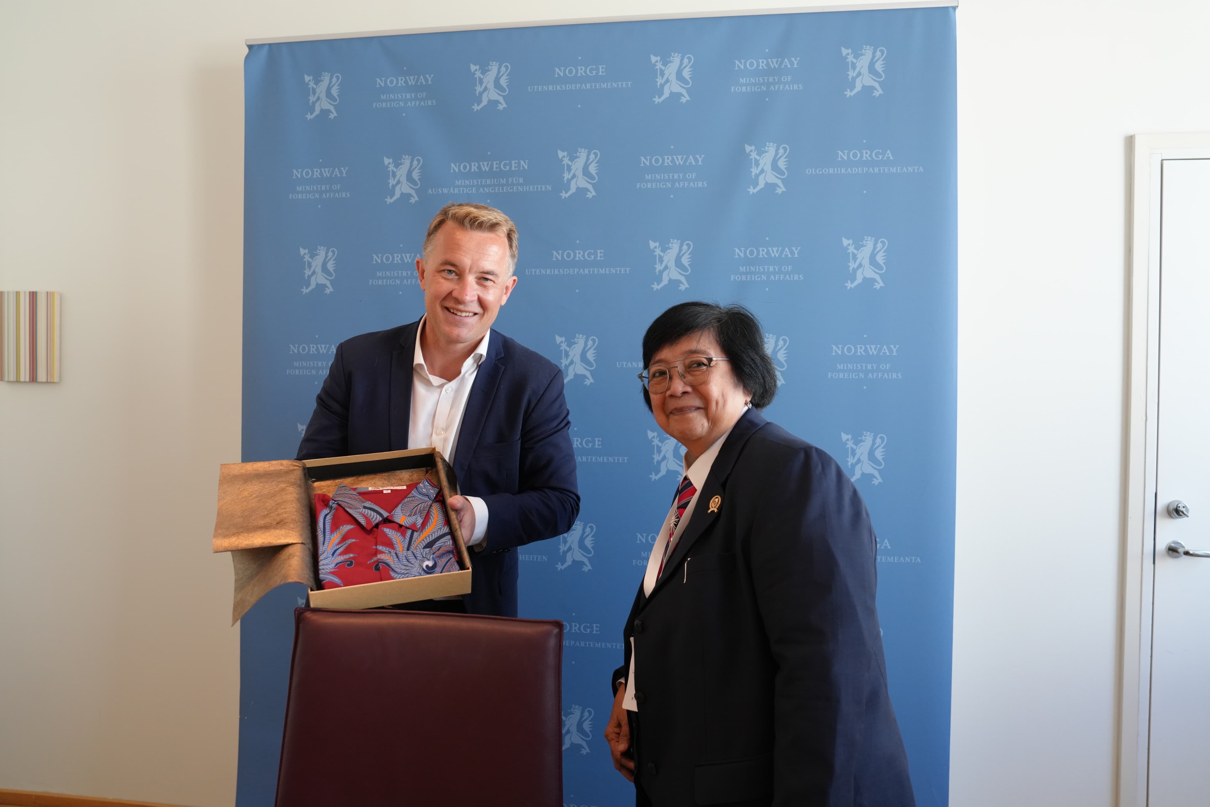 Saat sela-sela penyelenggaraan Oslo Tropical Forest Forum (OTFF) di Norwegia, Menteri Lingkungan Hidup dan Kehutanan (LHK), Siti Nurbaya, telah diagendakan bertemu dengan Wakil Menteri Luar Negeri Norwegia, Andreas Motzfeldt Kravik di kantornya (26/6/2024), untuk membahas upaya bersama dalam mengimplementasikan kebijakan FOLU Net Sink 2030. Pertemuan ini menegaskan kembali komitmen kuat kedua negara dalam menjaga kelestarian hutan tropis dan mengatasi tantangan lingkungan global.
