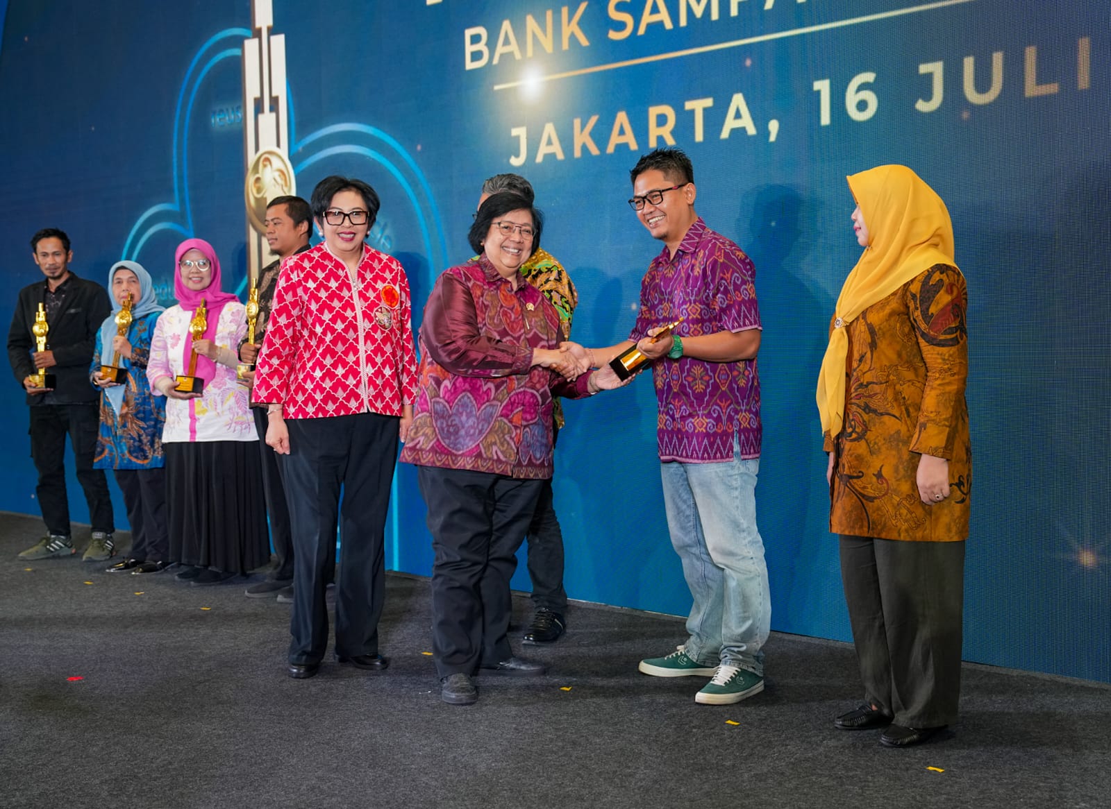 Pada kegiatan ini dilaksanakan juga pemberian Penghargaan kepada Bank Sampah Induk dan Bank Sampah Unit terbaik yang telah berkontribusi dalam praktik pengelolaan dan penanganan sampah di lingkungannya. Penghargaan Bank Sampah Induk terbaik diberikan kepada: (1) BSI Kumala, Kota Jakarta Utara, Provinsi DKI Jakarta; (2) BSI Rumah Plastik, Kabupaten Buleleng, Provinsi Bali; dan (3) BSI Pancadaya, Kota Padang, Provinsi Sumatera Barat.