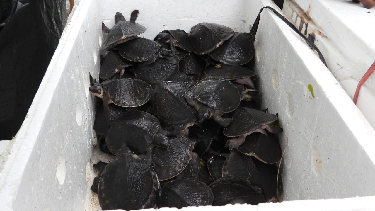 Kementerian Lingkungan Hidup dan Kehutanan (KLHK) melalui Direktorat Jenderal Konservasi Sumber Daya Alam dan Ekosistem melakukan pelepasliaran 4.605 individu Kura-Kura Moncong Babi (Carretochelys insculpta) hasil pembesaran (ranching) unit penangkaran V. Alam Nusantara, dengan dukungan dari PT. Freeport Indonesia ke habitatnya di Papua. Lepas liar berlangsung pada Rabu (7/8/2024) di hutan adat Kampung Nayaro, Distrik Mimika Baru, Kabupaten Mimika, Papua Tengah. Ribuan kura-kura moncong Babi tersebut merupakan hasil penyisihan tukik di penangkaran CV. Alam Nusantara, Timika, untuk keperluan restocking.