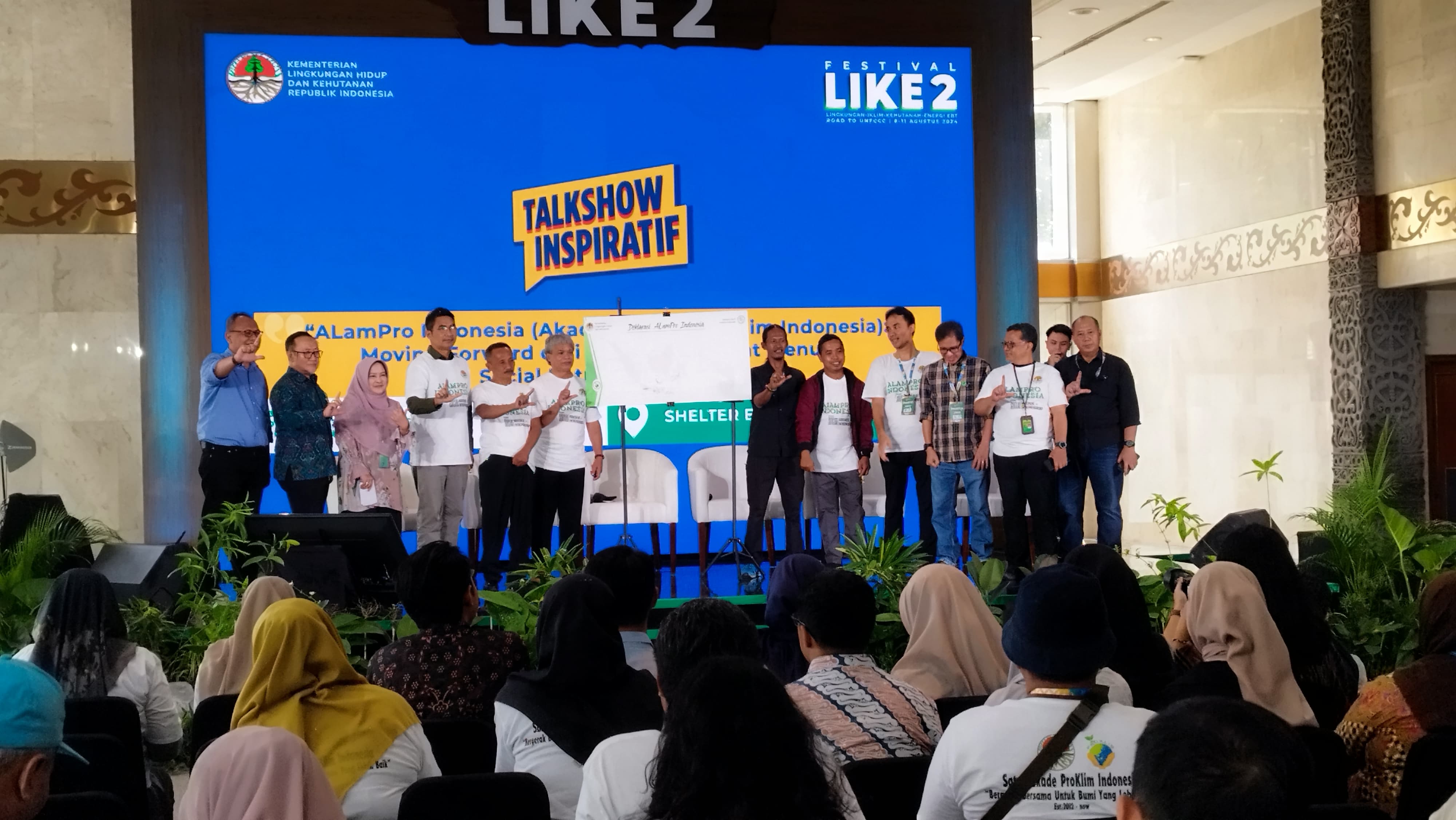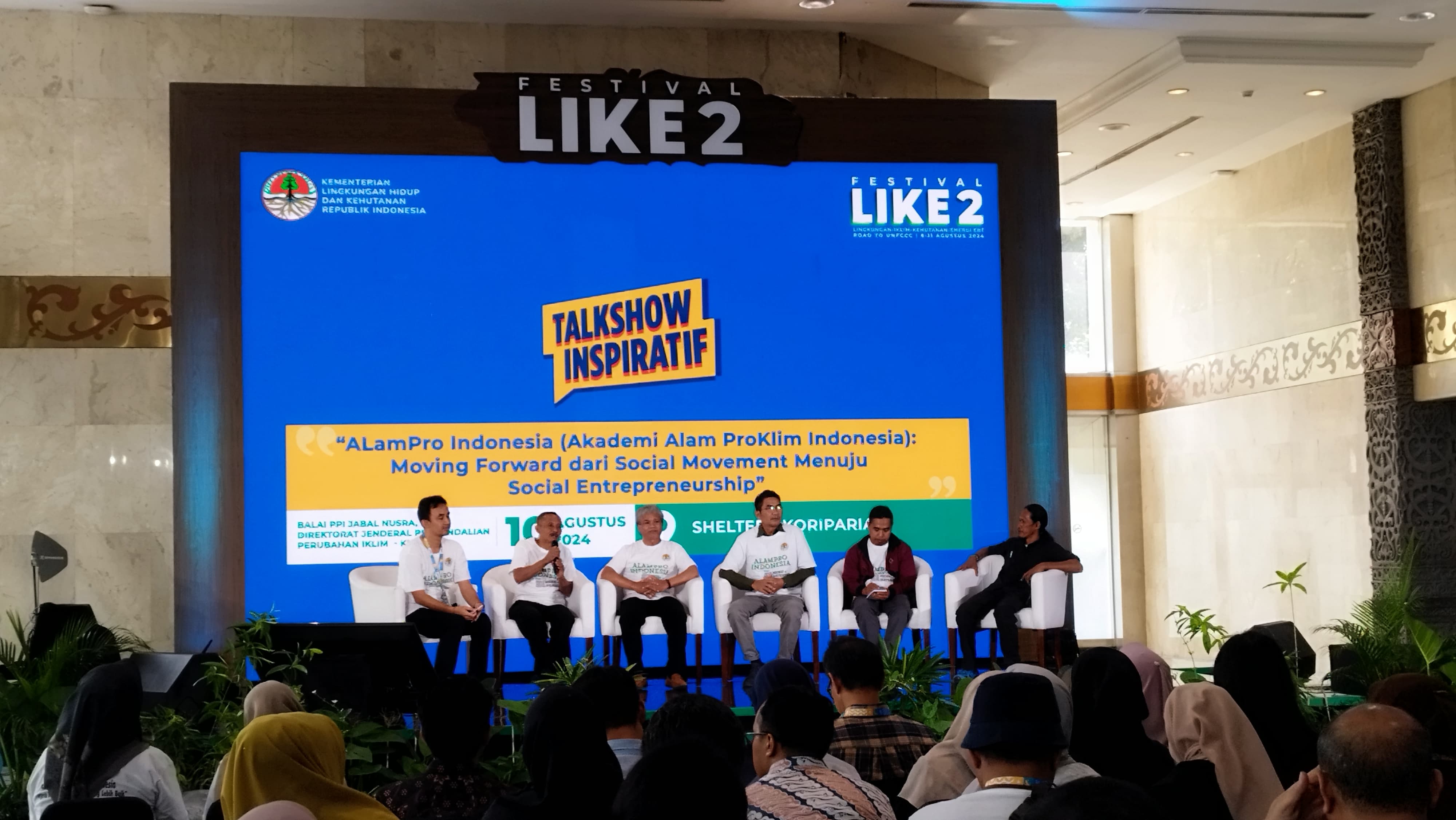 Direktorat Jenderal Pengendalian Perubahan Iklim (Ditjen PPI) Kementerian Lingkungan Hidup dan Kehutanan (KLHK) mengadakan talkshow bertajuk “Alampro Indonesia (Akademi Alam Proklim Indonesia): Moving Forward dari Social Movement menuju Social Entrepreneurship” atau “Alampro Indonesia: bergerak dari gerakan sosial menuju kewirausahaan sosial” pada Festival LIKE2 di Jakarta Convention Centre (10/08/2024). Kegiatan tersebut dilakukan sebagai salah satu upaya untuk merumuskan keberlanjutan Program Kampung Iklim (ProKlim).