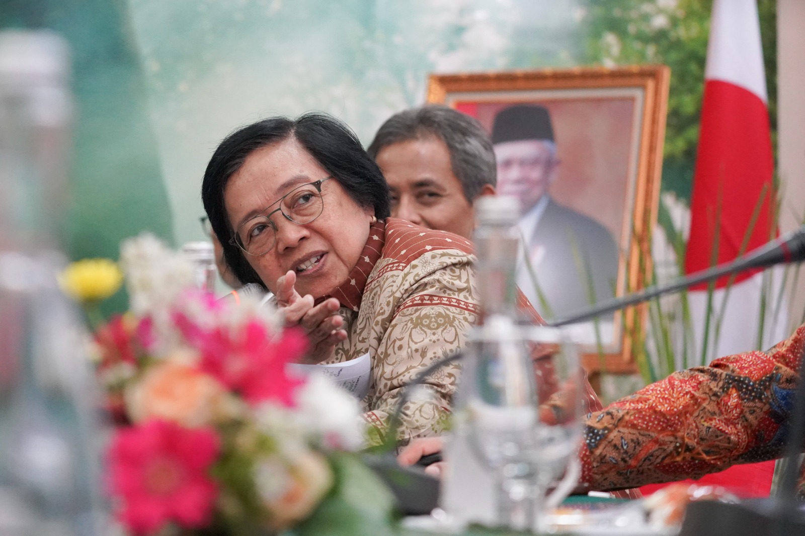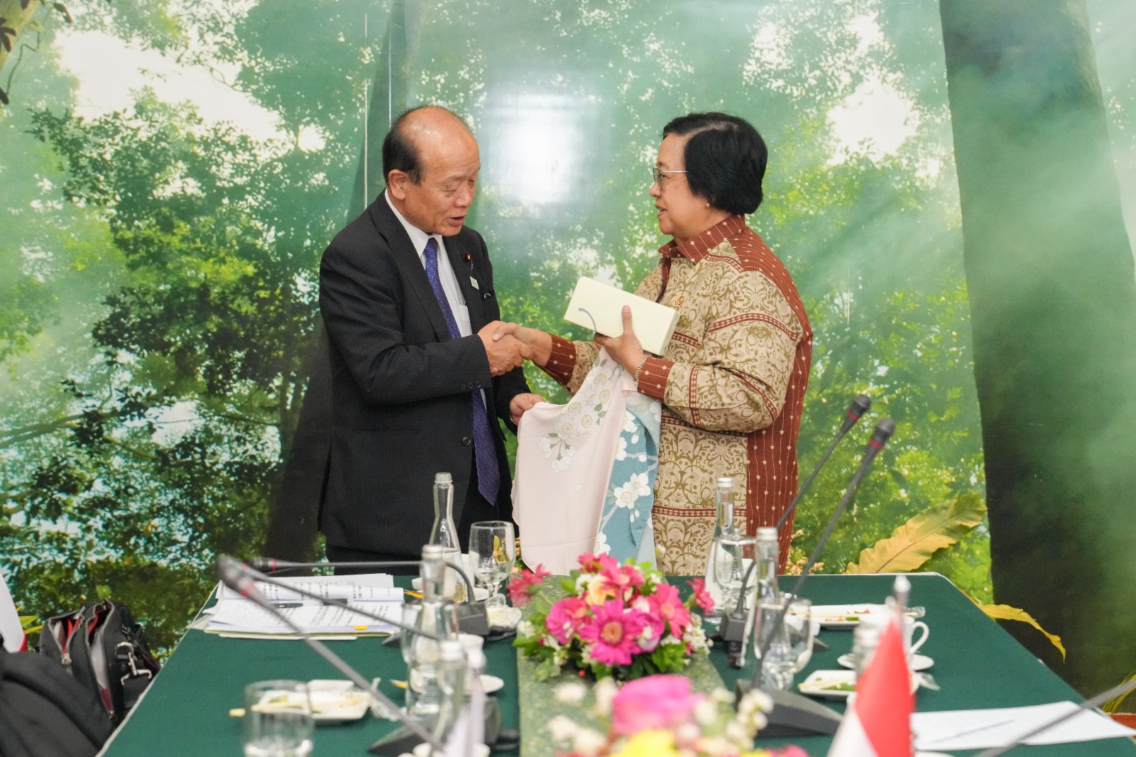 Menteri Lingkungan Hidup dan Kehutanan RI, Siti Nurbaya, menerima kunjungan Menteri Lingkungan Hidup Jepang, Mr. Yagi Tetsuta dan delegasi Jepang di kantor Kementerian Lingkungan Hidup dan Kehutanan Jakarta, Rabu (21/08).