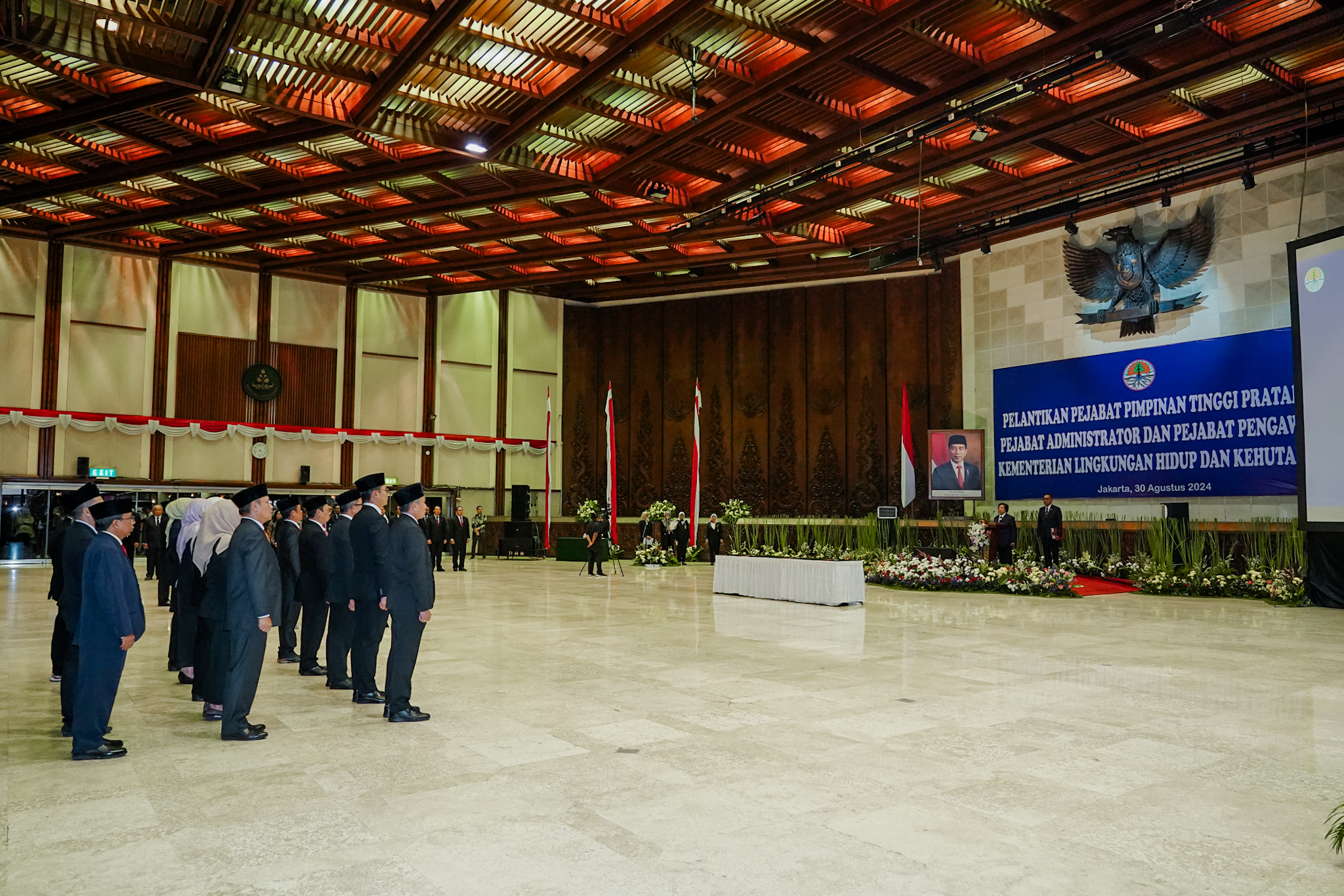 Menteri Lingkungan Hidup dan Kehutanan (LHK) Siti Nurbaya melantik 22 orang Pejabat Tinggi Pratama (Eselon II), 62 orang Pejabat Administrator (Eselon III), dan 84 orang Pejabat Pengawas (Eselon IV) lingkup Kementerian LHK di Jakarta, Jumat (30/8/2024).