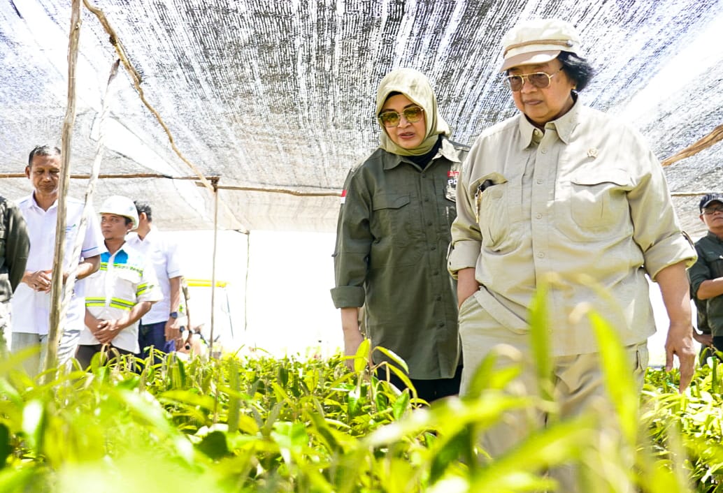 Menteri LHK Siti Nurbaya mengunjungi Persemaian Liang Anggang (PLA) yang berlokasi di Kawasan Hutan Lindung Kel. Landasan Ulin Barat Kec. Lianganggang, Kota Banjarbaru. Prov. Kalimantan Selatan, Selasa (03/09/2024). Kunjungan ke persemaian skala besar tersebut adalah dalam rangka melihat perkembangan pembangunan Persemaian Liang Anggang (PLA) yang hampir rampung yang merupakan salah satu dari delapan persemaian skala besar nasional yang telah terbangun yaitu di Toba - Sumut, Likupang - Sulut, Labuan Bajo - NTT, Rumpin - Jawa Barat, Mentawir - IKN, Mangrove G20 - Bali dan Mandalika - NTB.