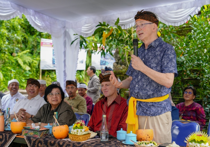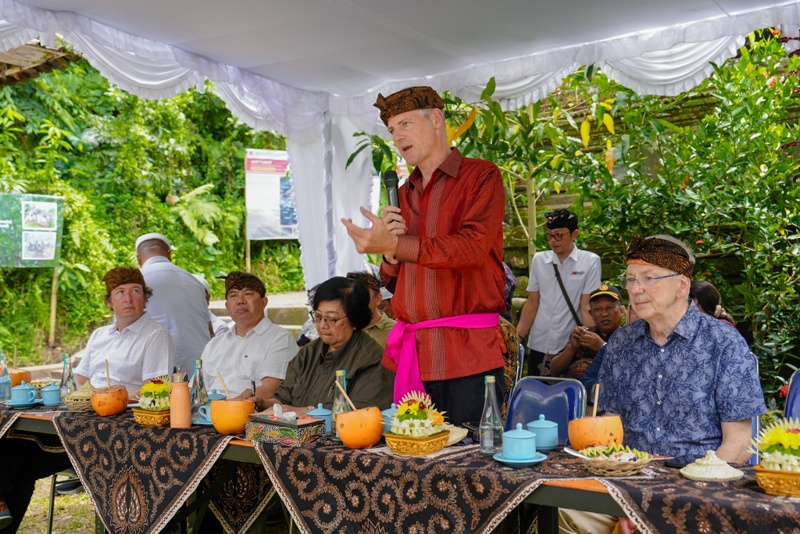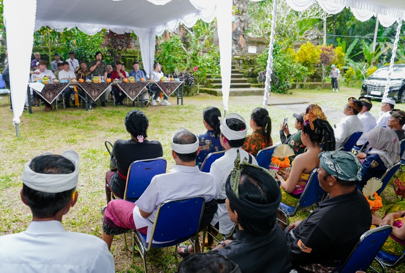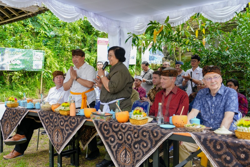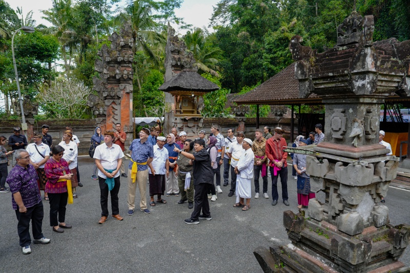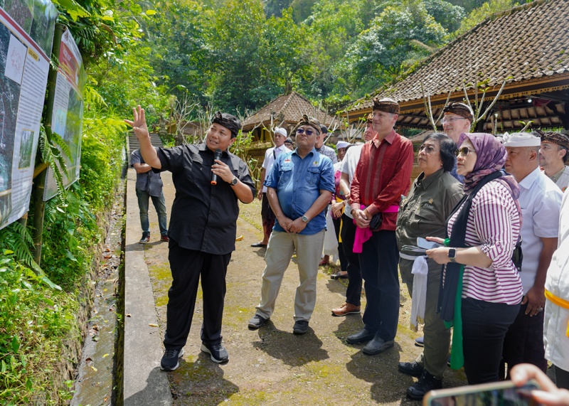 Kehadiran rombongan disambut dengan Ritual Adat (Tradisi Melukat), yang merupakan pembersihan diri dengan memercikkan tirta atau air suci yang didoakan oleh pemuka agama, Pemakaian Kain Adat kepada Rombongan Menteri LHK dan Tim BEF, serta Tarian Sekar Sandat sebagai tarian selama datang.