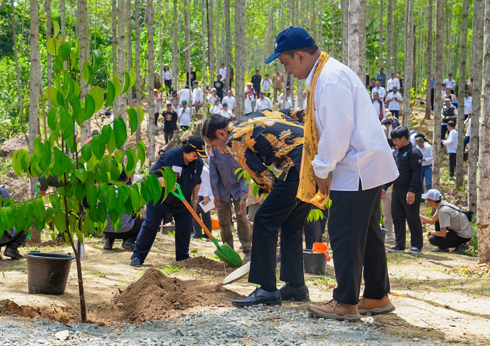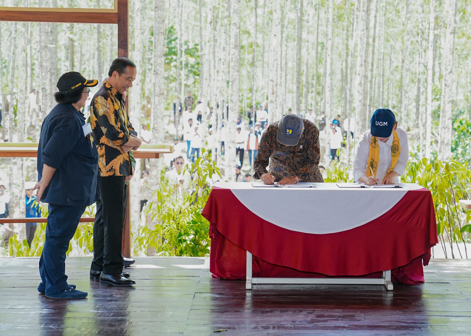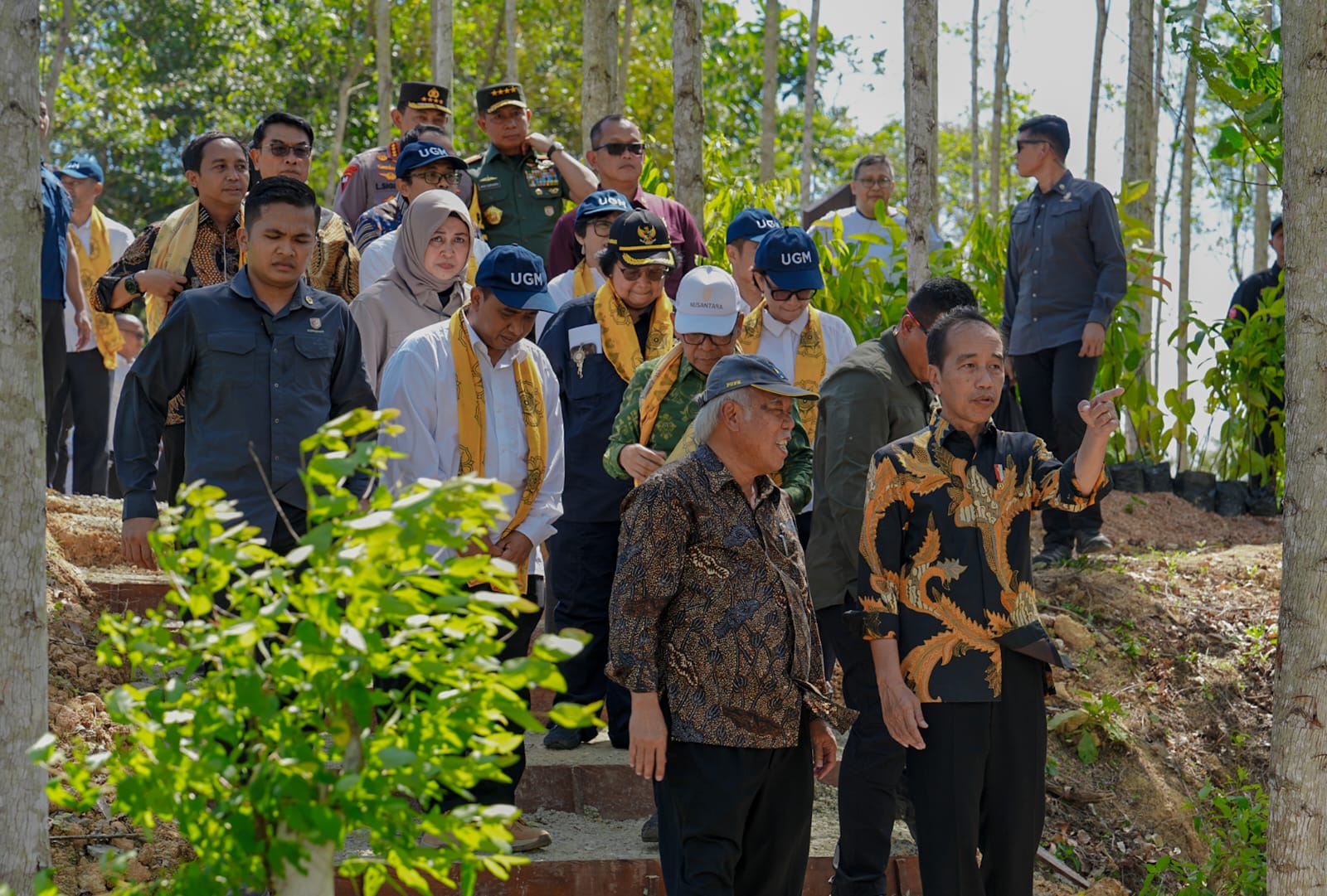 Presiden Joko Widodo (Jokowi) melakukan peninjauan sekaligus pencanangan kawasan Wanagama Nusantara yang berada di Kawasan Inti Pusat Pemerintahan (KIPP), Ibu Kota Nusantara (IKN), pada Jumat (13/09/2024). Pencanangan ini merupakan bagian dari upaya pemerintah untuk memperkuat kelestarian lingkungan dan pendidikan berkelanjutan di Ibu Kota Nusantara (IKN).