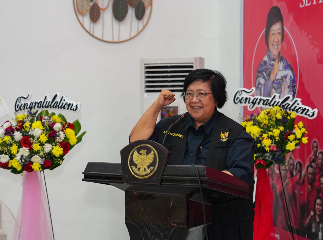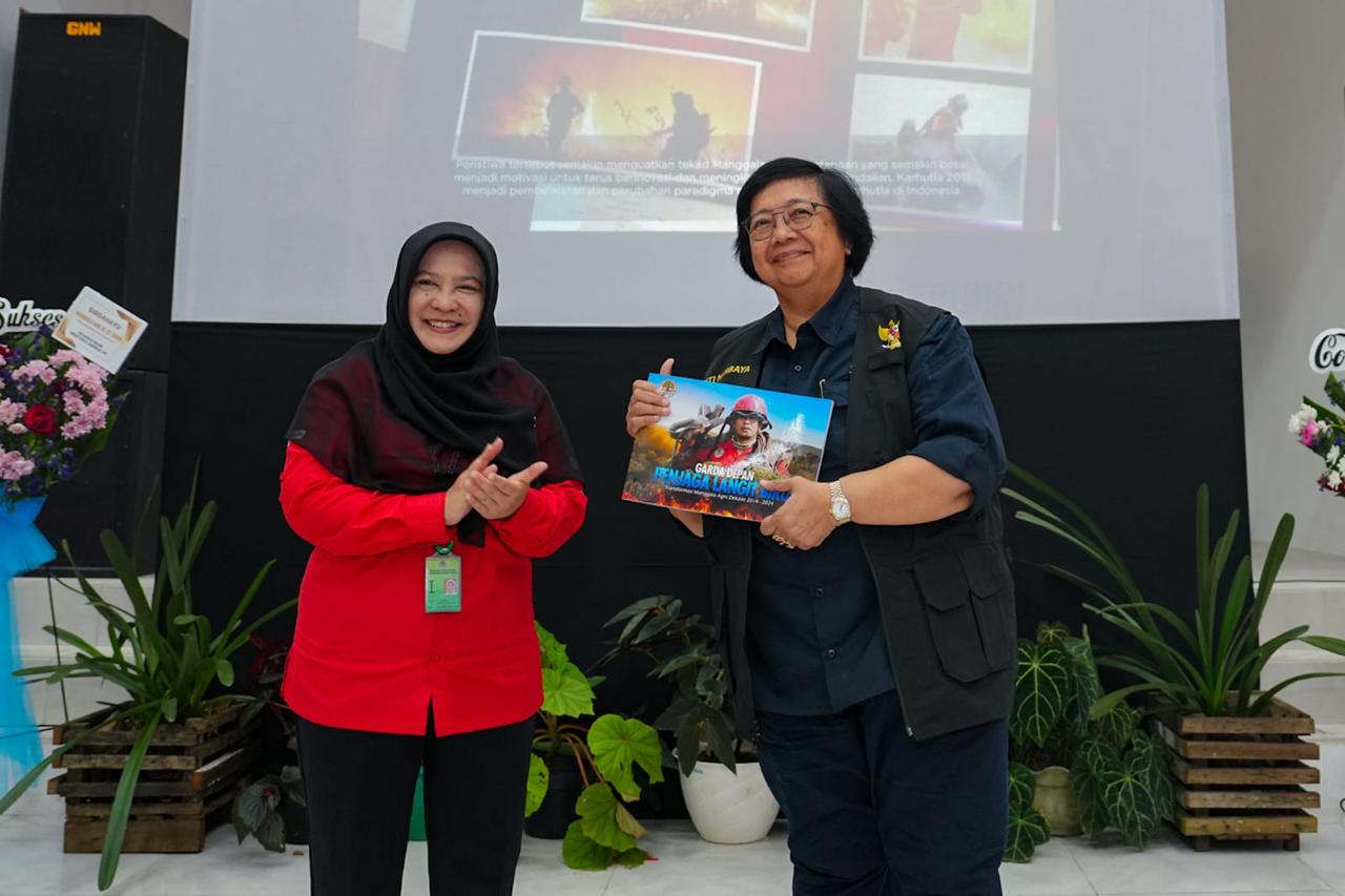 "Anugerah ini kami sematkan sebagai ungkapan terimakasih kami. Ibu Menteri Siti Nurbaya adalah Ibu Manggala Agni, Ibu Patriot Langit Biru," tambahnya.