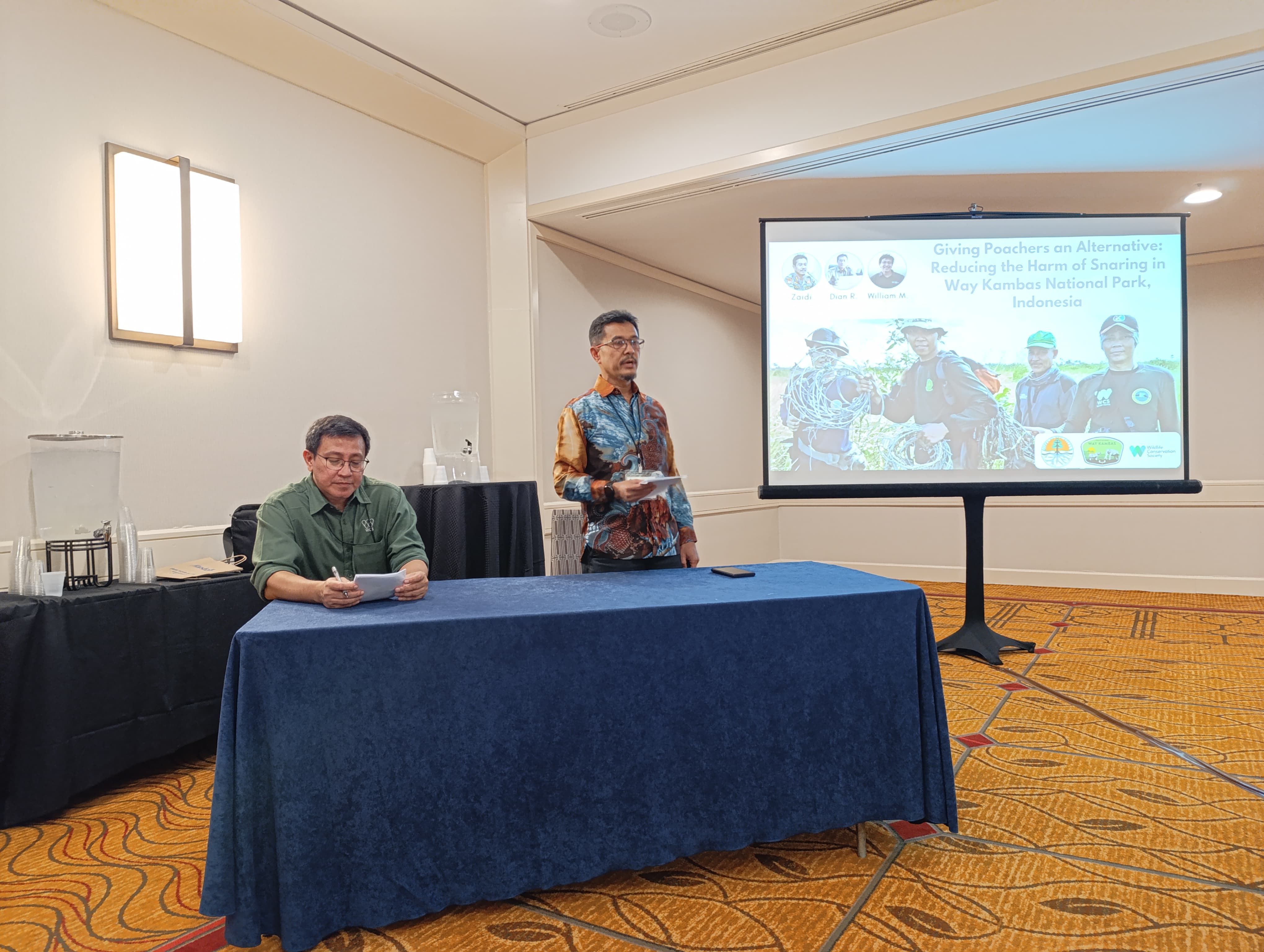 Delegasi dari Indonesia yang terdiri dari Kepala Balai TNWK, MHD. Zaidi, Kepala Sub Direktorat Pengendalian Pengelolaan Kawasan Konservasi, Direktorat Kawasan Konservasi, Dian Risdiyanto, dan Deputy Country Director of WCS Indonesia, William Marthy, pada 32nd Annual Problem-Oriented Policing Conference di Baltimore, Maryland, USA (12-14 September 2024), mendapat kesempatan untuk mempresentasikan studi kasus tersebut bersama 5 finalis lainnya. Dari paparan para finalis, Komite juri Herman Goldstein Award menyatakan studi kasus Way Kambas “Reforming Hunters to Reduce Snaring in Sumatra, Indonesia” terpilih sebagai pemenang.