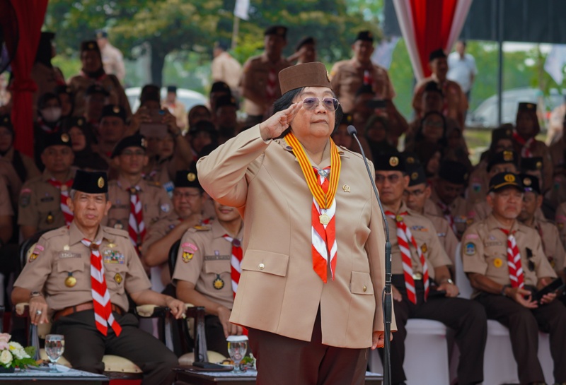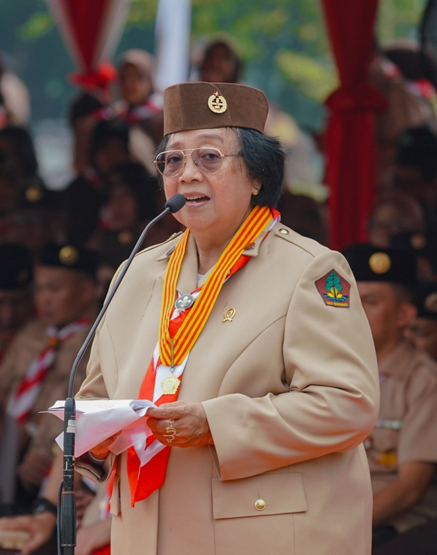 Menteri Lingkungan Hidup dan Kehutanan (LHK) Siti Nurbaya membuka kegiatan Perkemahan Bakti Saka Kalpataru dan Saka Wanabakti (Pertikawan) Tingkat Nasional ke II Tahun 2024 di Bumi Perkemahan dan Graha Wisata (Buperta) Wiladatika Cibubur-Jakarta Timur, Senin (23/9).